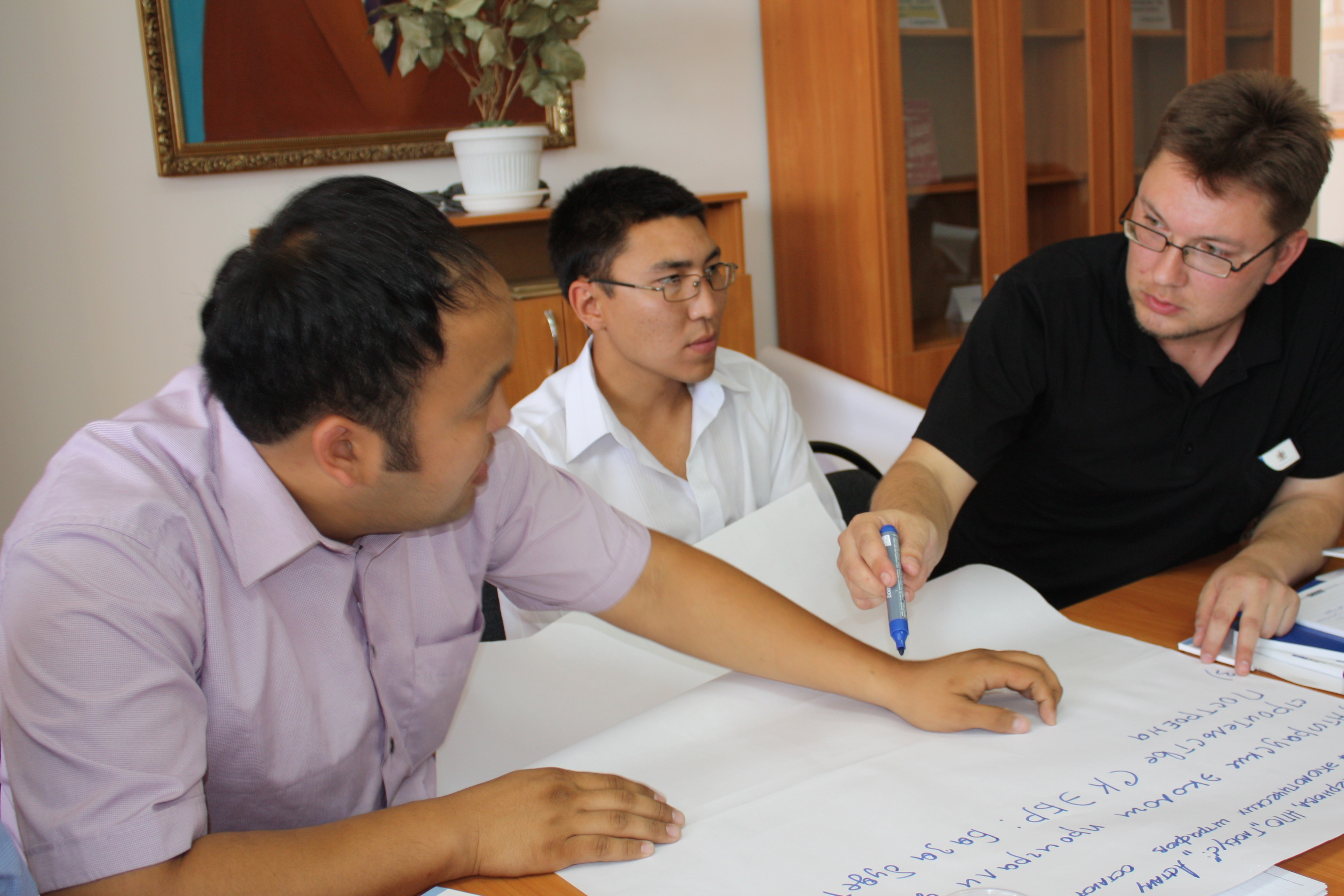 Participants at an OSCE-supported training seminar discuss environmental messages, Atyrau, Kazakhstan, 10 June 2011.