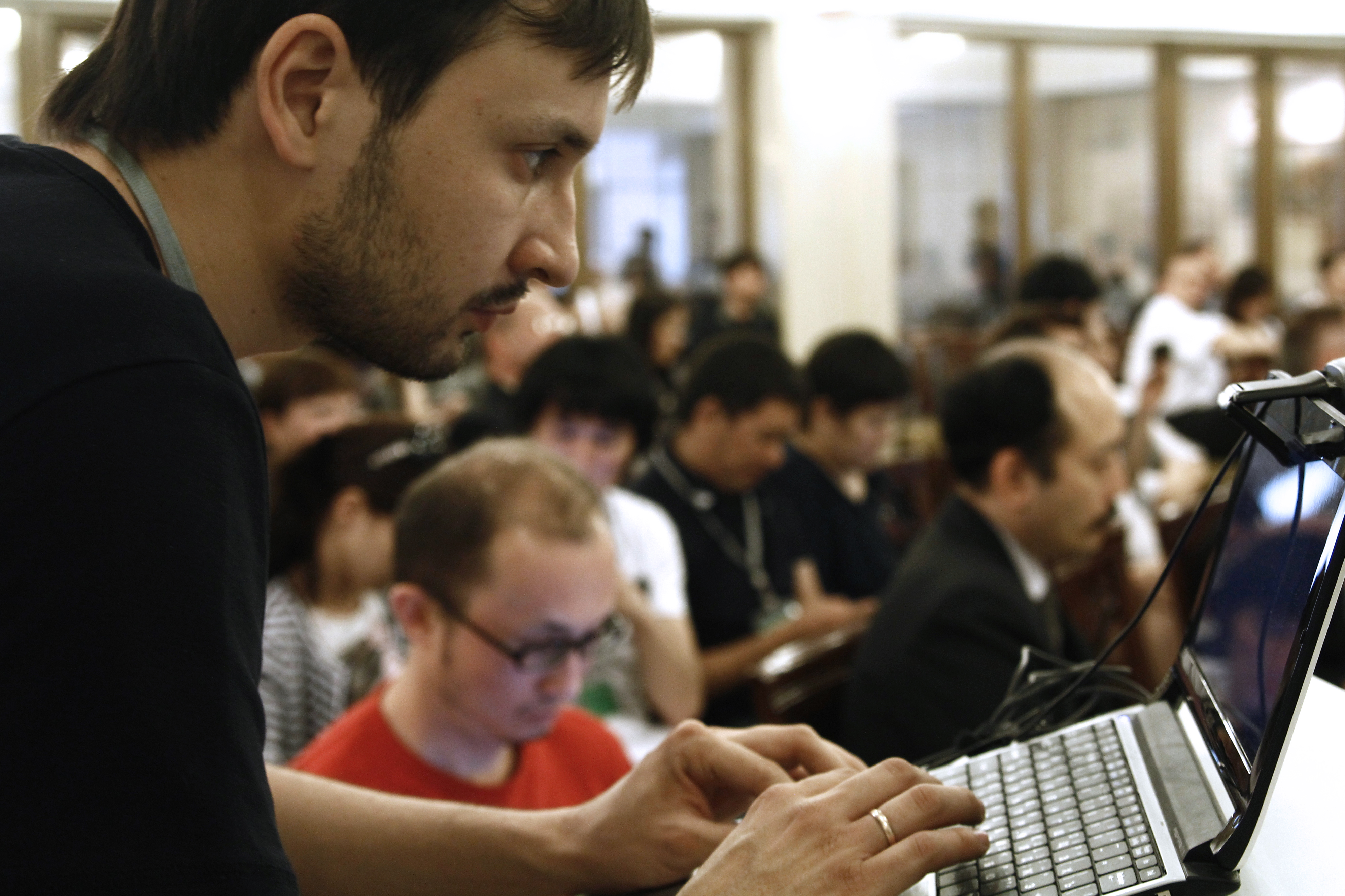 A participant tweets about his impressions of the Third Central Asian Internet Development Forum, Almaty, 18 May 2012.