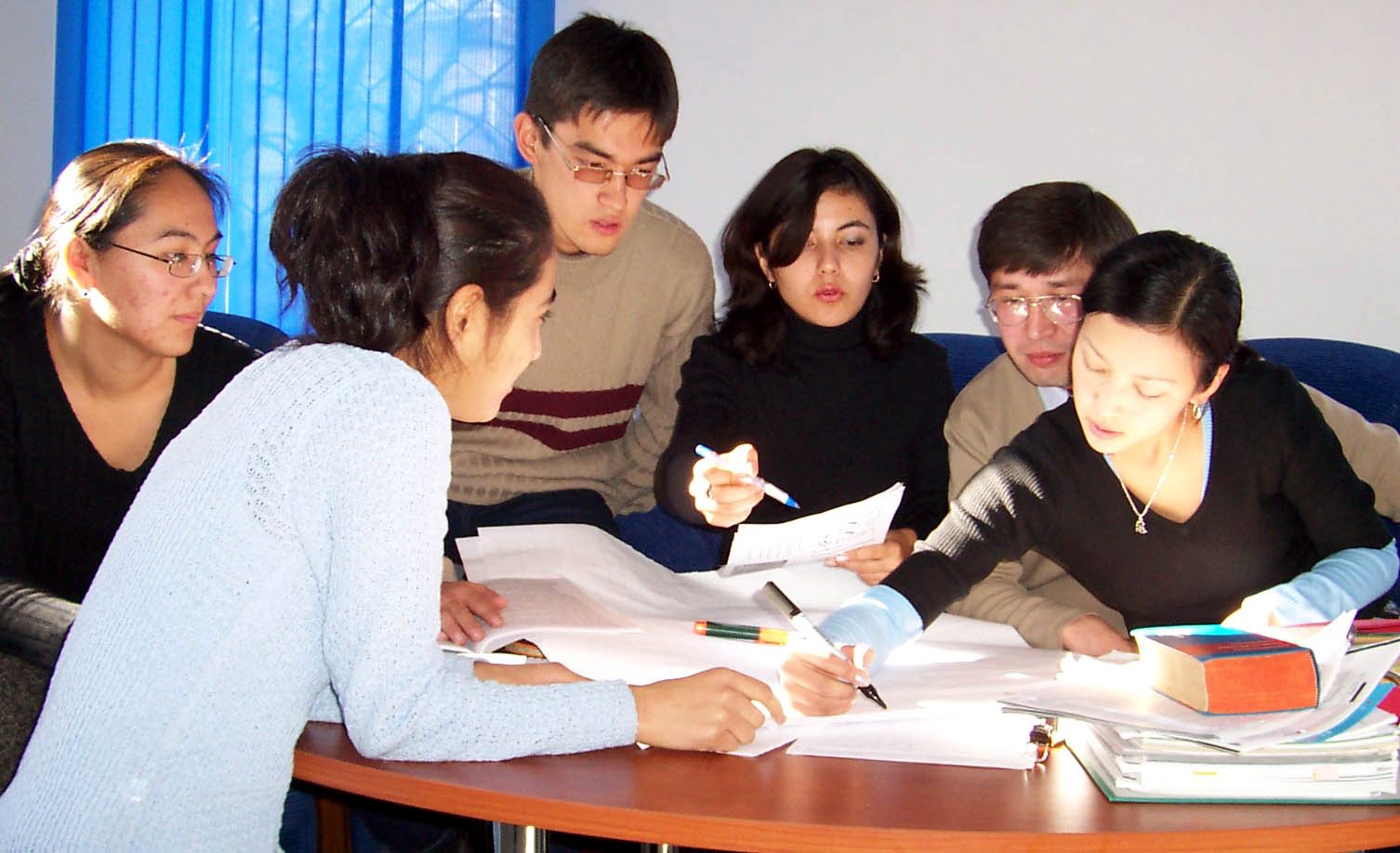 Post-graduate students engage in group work at the OSCE Academy in Bishkek, 2 May 2003.