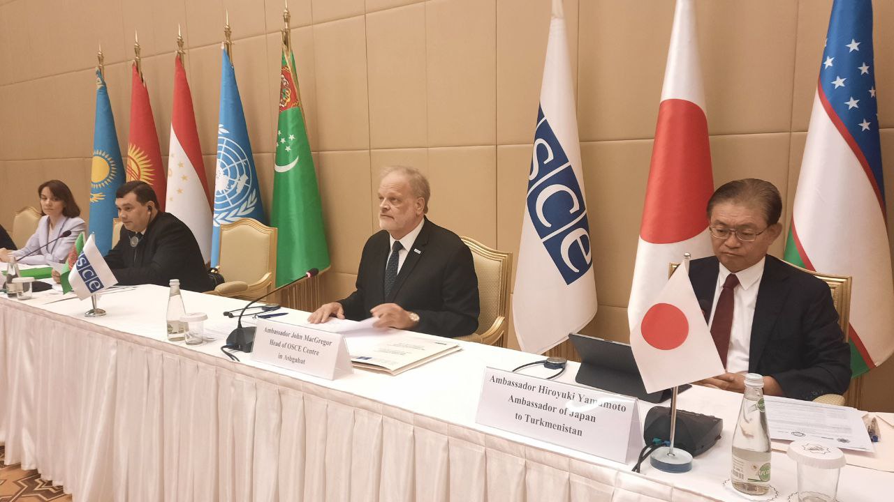 John MacGregor, Head of the OSCE Center in Ashgabat, speaking at the opening of an OSCE-organized regional workshop on protecting critical infrastructure from threats, Ashgabat, 14 June 2022.