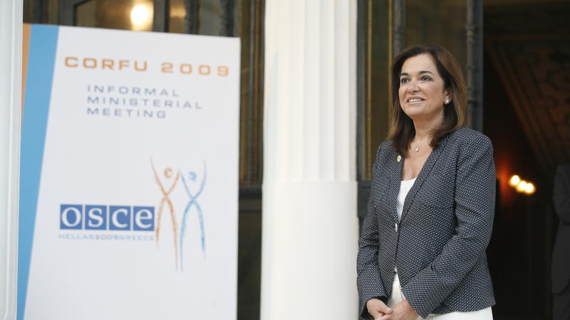 OSCE Chairperson-in-Office and Greek Foreign Minister Dora Bakoyannis at the press conference after the informal meeting of OSCE foreign ministers, Corfu, 28 June 2009.