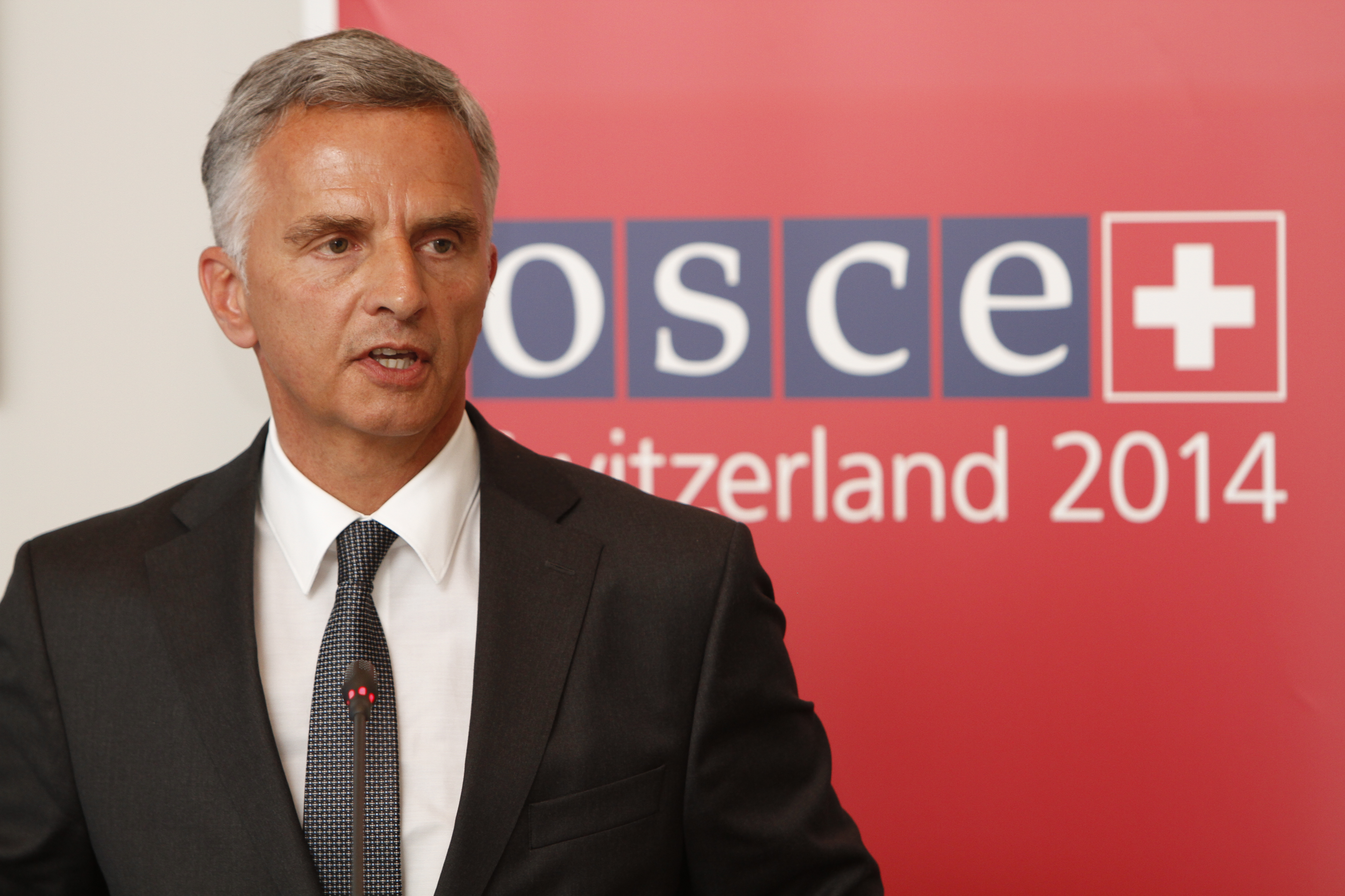 Swiss Foreign Minister and OSCE Chairperson-in-Office, Didier Burkhalter, at a press conference on the sidelines of the 2014 Annual Security Review Conference, Vienna, 24 June 2014.