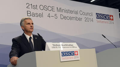 BASEL, Switzerland, 5 December 2014 - OSCE Chairperson-in-Office and Swiss Foreign Minister Didier Burkhalter summarized the discussions of the first day at the OSCE 21st Ministerial Council in Basel, noting that OSCE Foreign Ministers are meeting against the backdrop of one of the worst crises in the Euro-Atlantic and Eurasian area since the end of the Cold War.