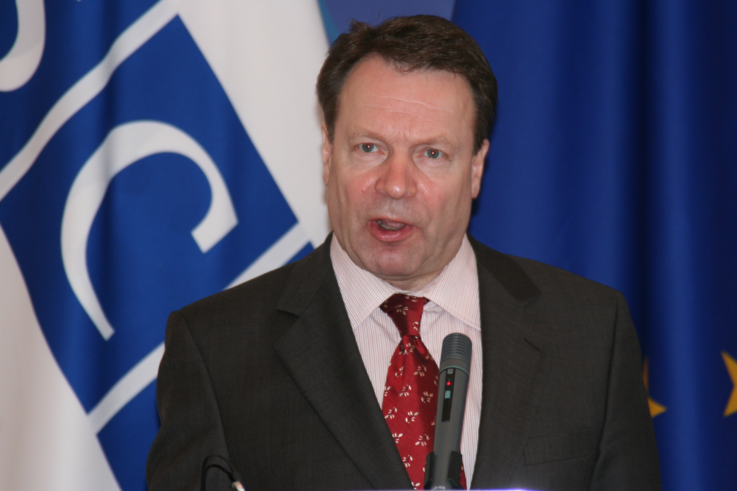 OSCE Chairman-in-Office, Finnish Foreign Minister Ilkka Kanerva addresses the media in Tbilisi, 27 February 2008.