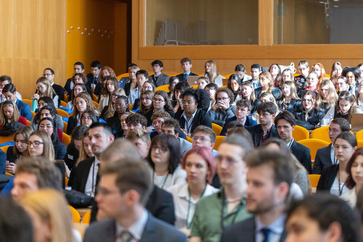Participating students at the opening ceremony of the MUNLawS conference, hosting the OSCE Court of Conciliation and Arbitration’s Moot Court simulation, Faculty of Law, University of Ljubljana, Slovenia 11 November 2022.