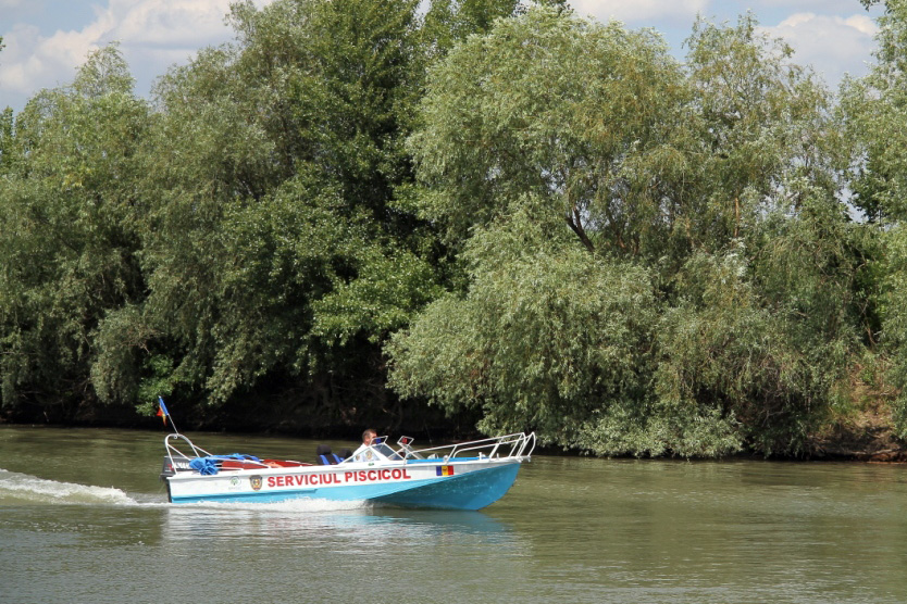 The OSCE-funded inspection boat “AMUR-M” on its maiden voyage on the Dniester/Nistru River, 8 June 2012.