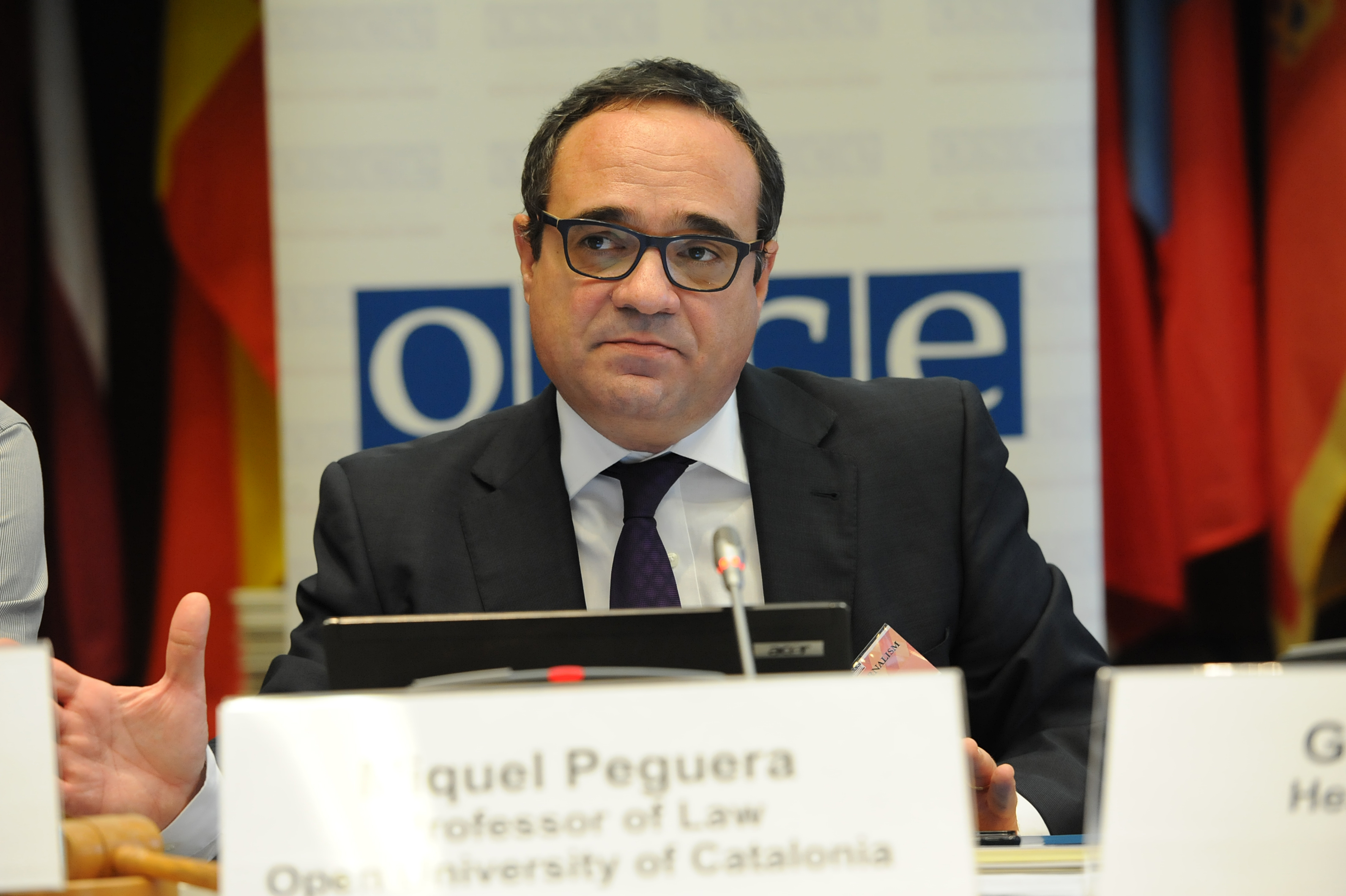 Miquel Peguera, Associate Professor of Law at the Open University of Catalonia, speaking at the expert meeting on intermediaries role in Open Journalism, organized and hosted by the Office of the OSCE Representative on Freedom of the Media,