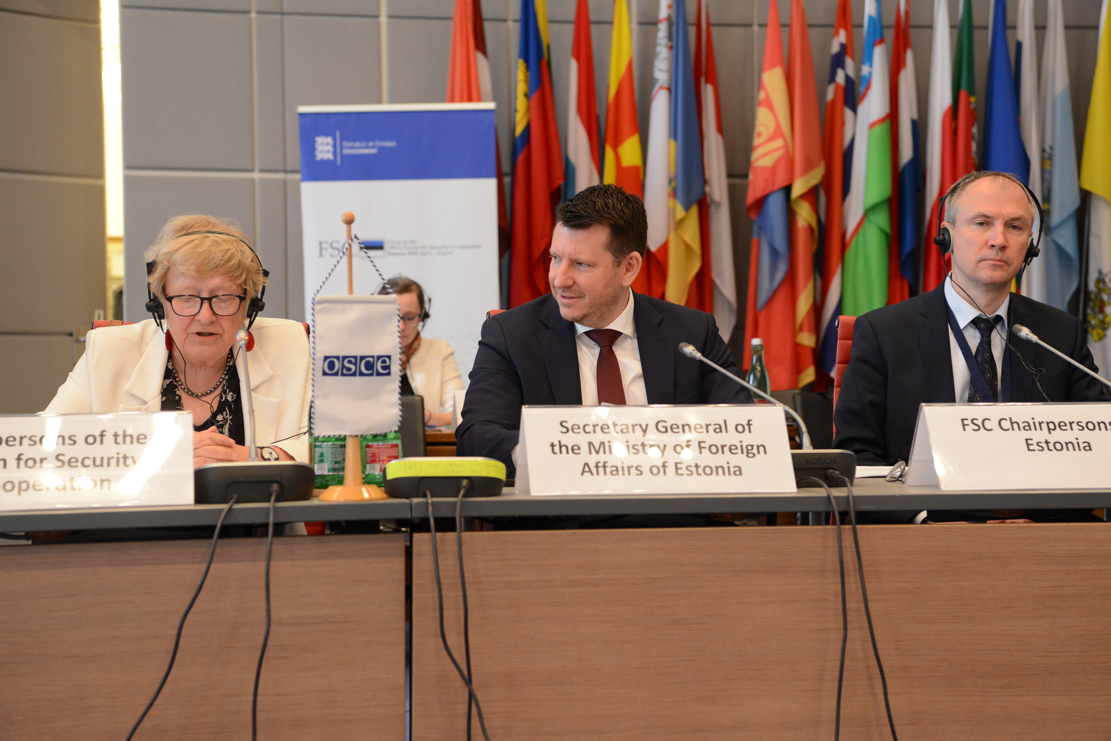 Jonatan Vseviov, Secretary-General of Estonia’s Ministry of Foreign Affairs addresses the inaugural Forum for Security Co-operation meeting under Estonia's Chairpersonship, Vienna, 14 May 2025.