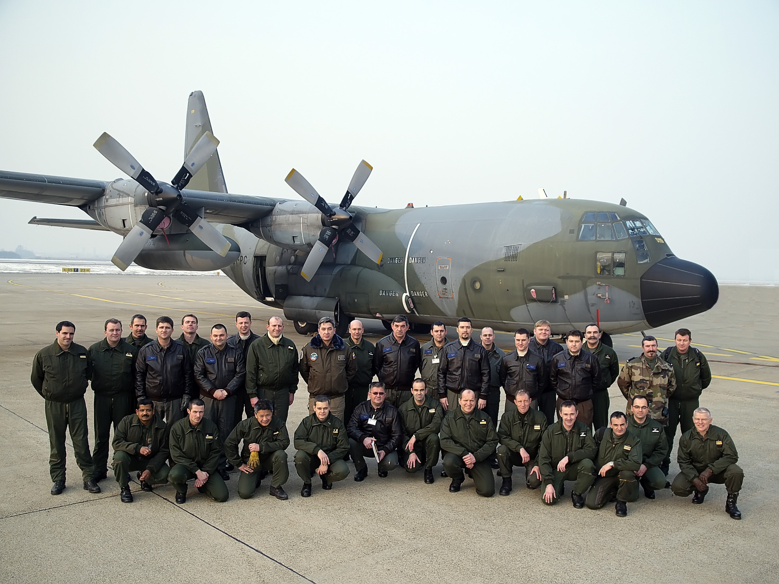 A group photo next to a C-130 aircraft after a flight over Croatia, 1 February 2006, under the Open Skies Treaty.