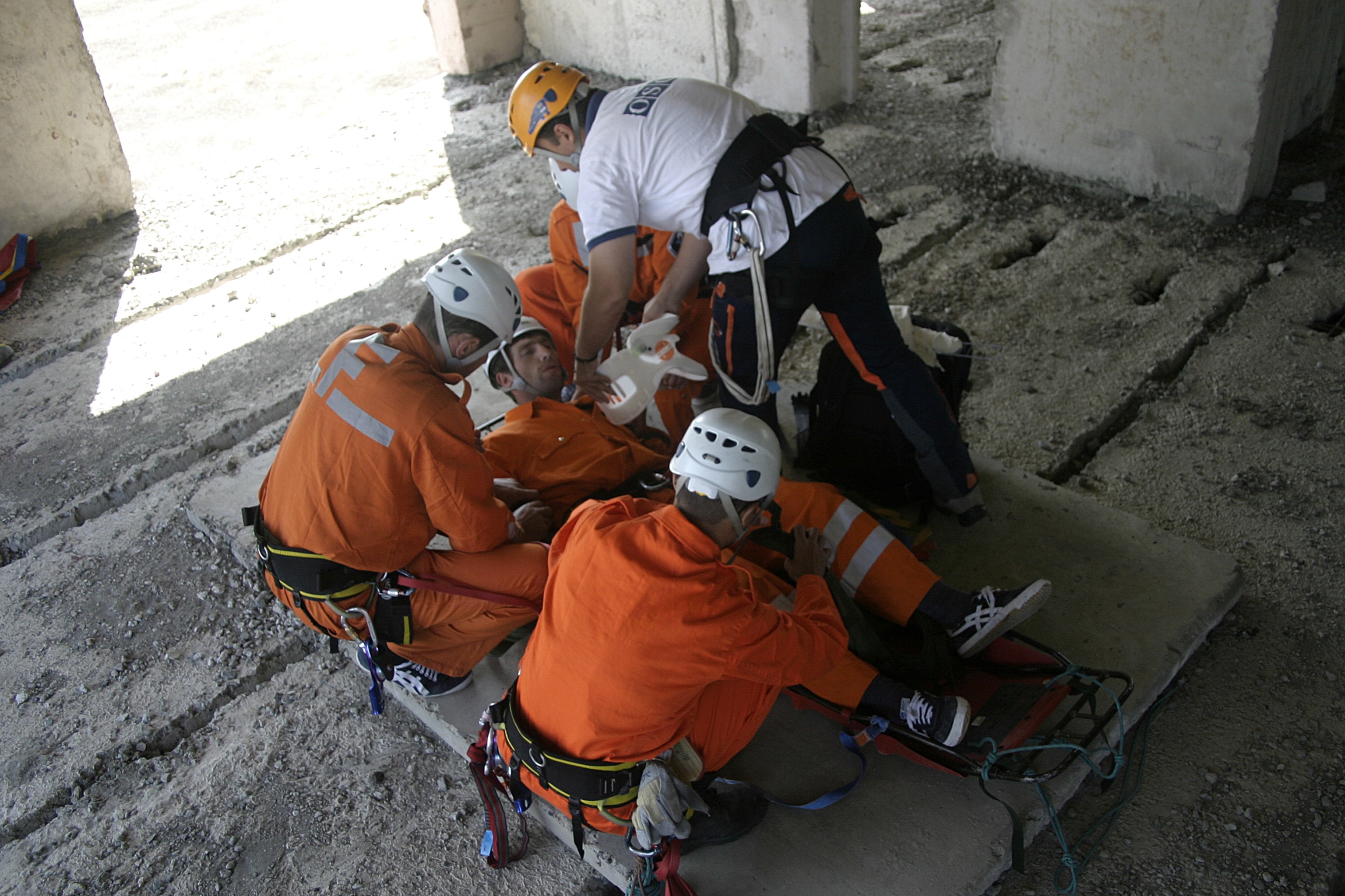 Emergency department staff members from the Georgian Interior Ministry demonstrate the skills they gained during a search and rescue OSCE training course, Tbilisi, 28 September 2007.