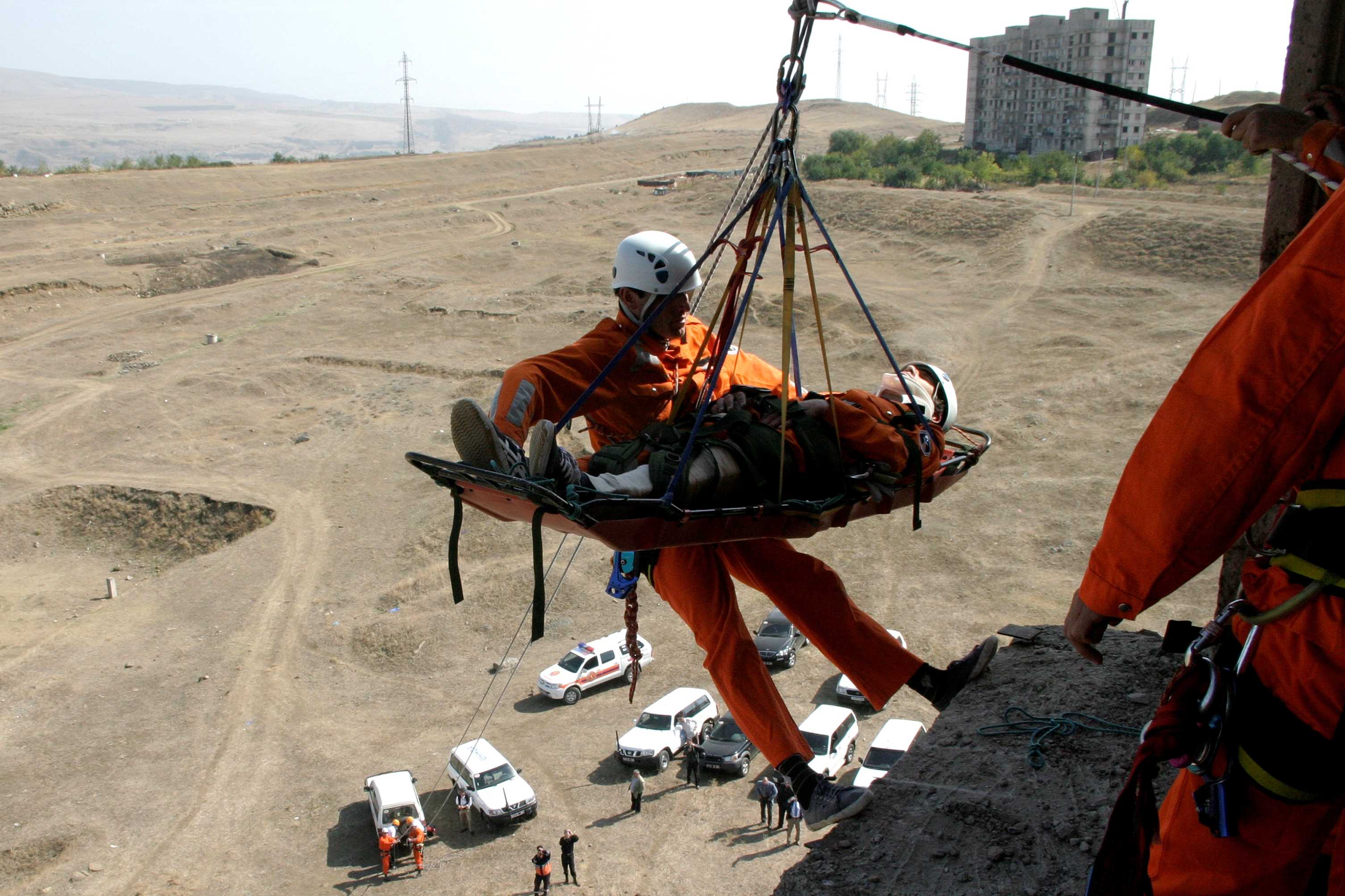 Rescue workers from the Georgian Interior Ministry demonstrate the skills they gained during a search and rescue training course, part of a larger programme run by the OSCE Mission to Georgia, Tbilisi, 28 September 2007.