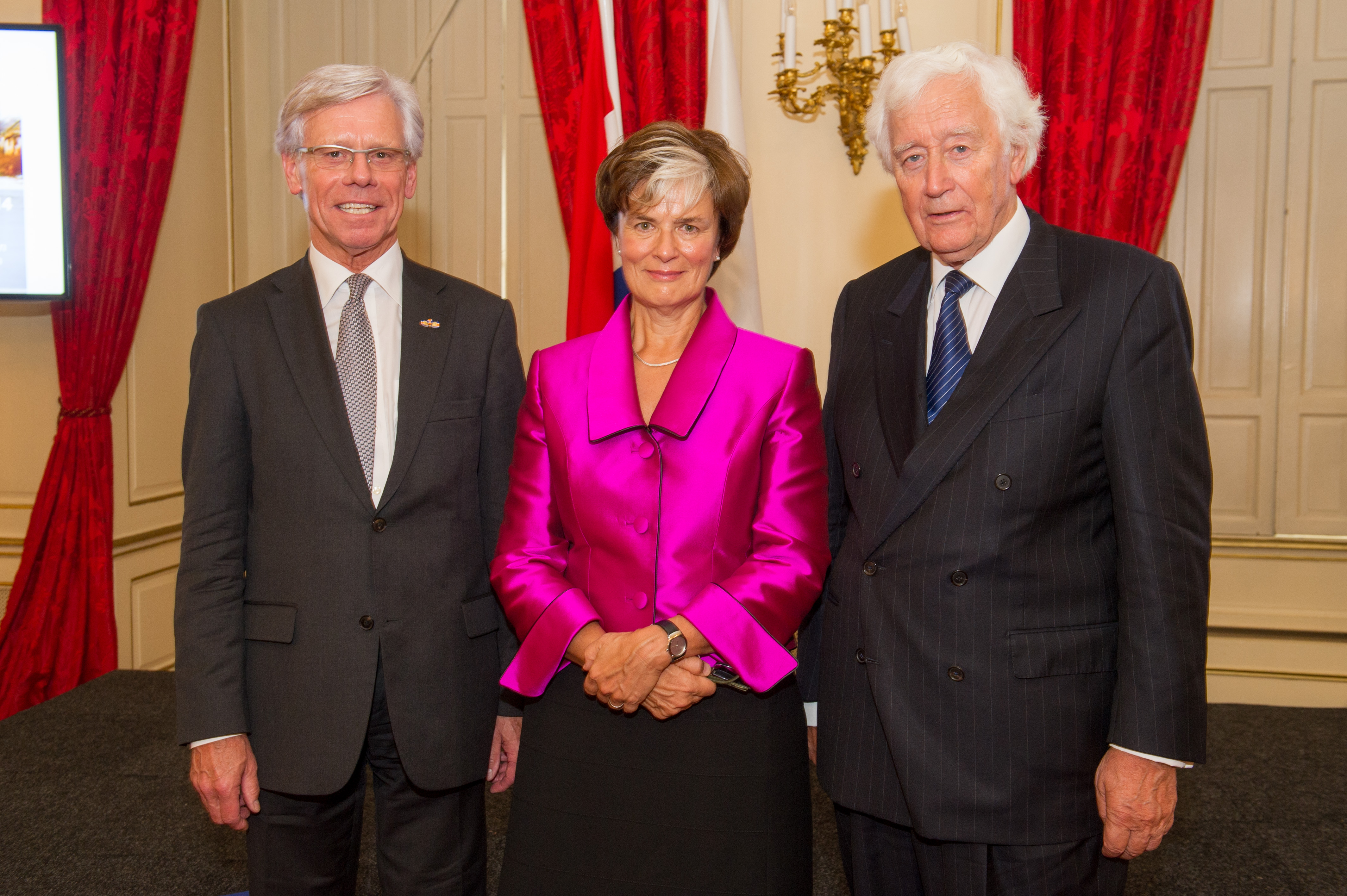 OSCE High Commissioner on National Minorities Astrid Thors (c), with the former OSCE High Commissioners, Knut Vollebaek (l) and Rolf Ekeus (r), during the Max van der Stoel Award ceremony, The Hague, 2 October 2014.