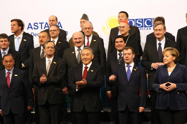 Heads of State and Government during the family photo session before the opening of the OSCE Summit in Astana, 1 December 2010.