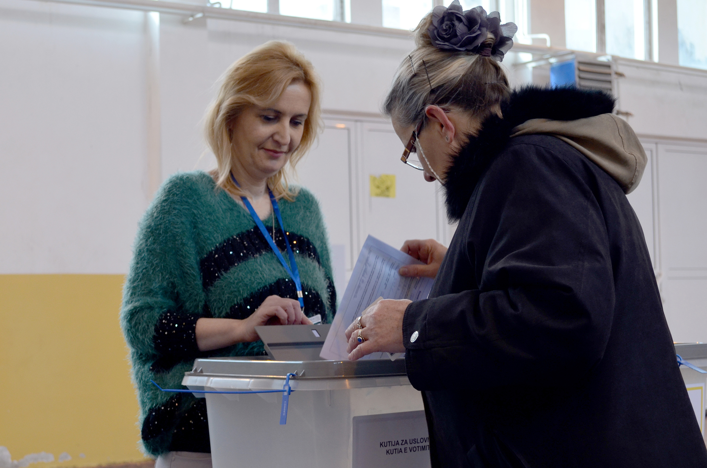 A voter cats ballot in the 23 February 2014 mayoral elections in Mitrovica/Mitrovice North.