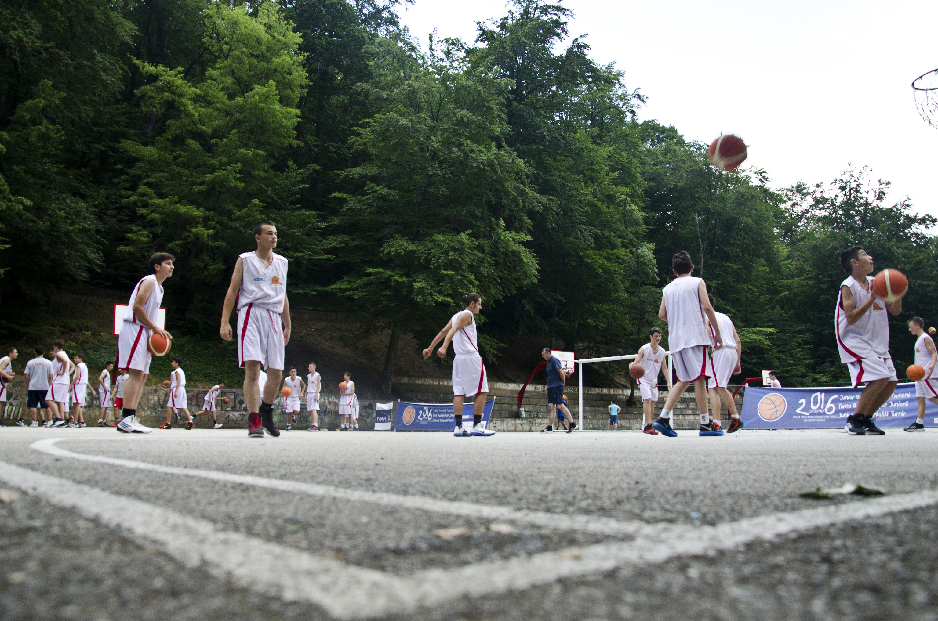 The participants practice before the OSCE Mission-organized Junior Basketball Tournament continues, held in Gёrmia/Grmija Park, 29 June 2016.