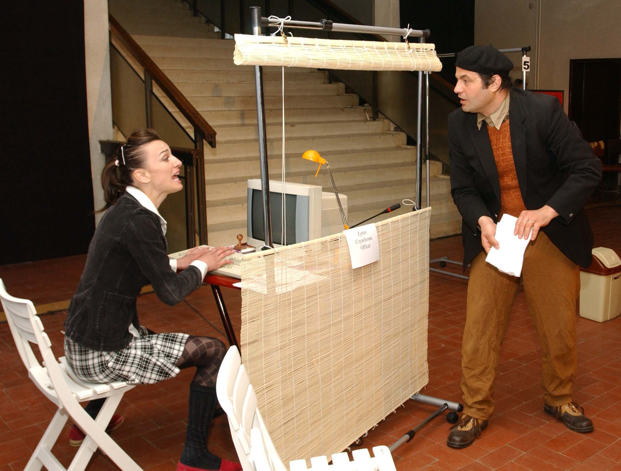 A scene from a play produced by the OSCE Mission in Kosovo and UNMIK that aims to raise public awareness about the benefits of implementing standards in Kosovo. The premiere was held in Ismail Qemajli primary school in Prishtine/Pristina on 4 May 2005.