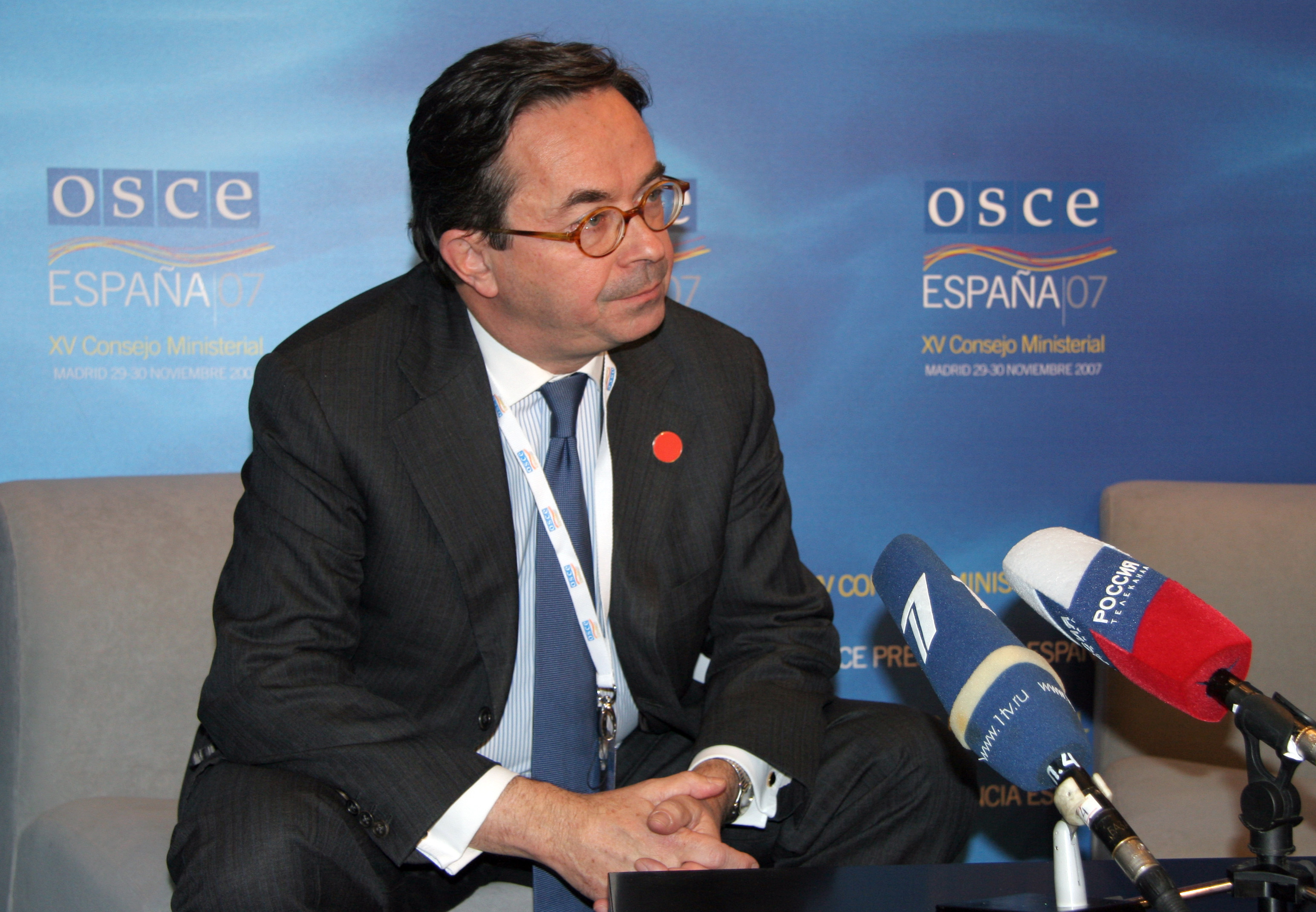 ODIHR Director Ambassador Christian Strohal gives an interview to Russian TV journalists during the Madrid Ministerial Council, 29 November 2007.