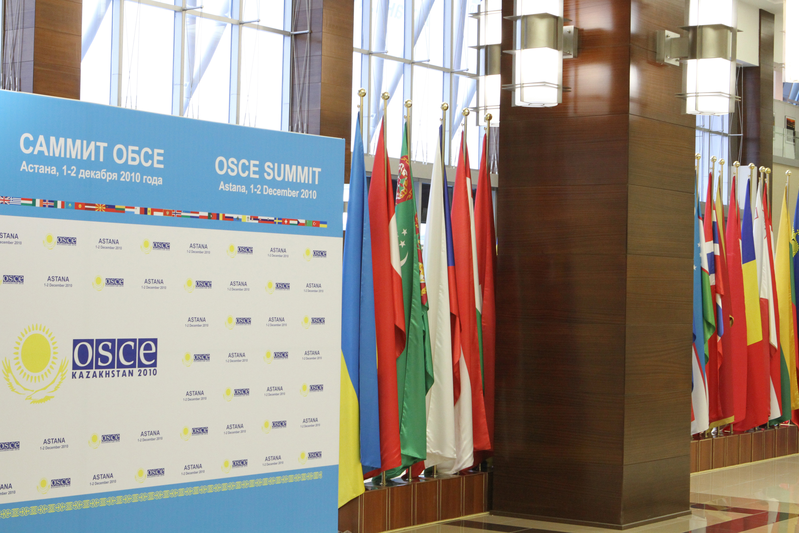 Eine OSZE-Flagge im Palast, Astana, 28. November 2010.