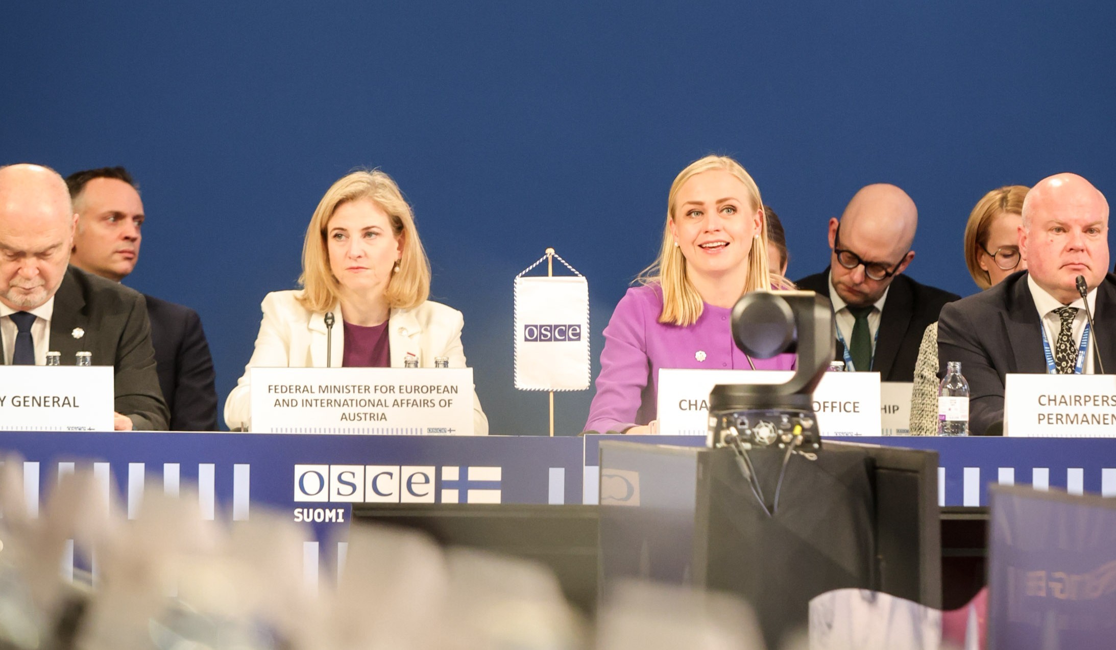 OSCE Chairperson-in-Office, Minister for Foreign Affairs of Finland Elina Valtonen addresses the opening of the 32nd OSCE Ministerial Council in Vienna, 4 December 2025.