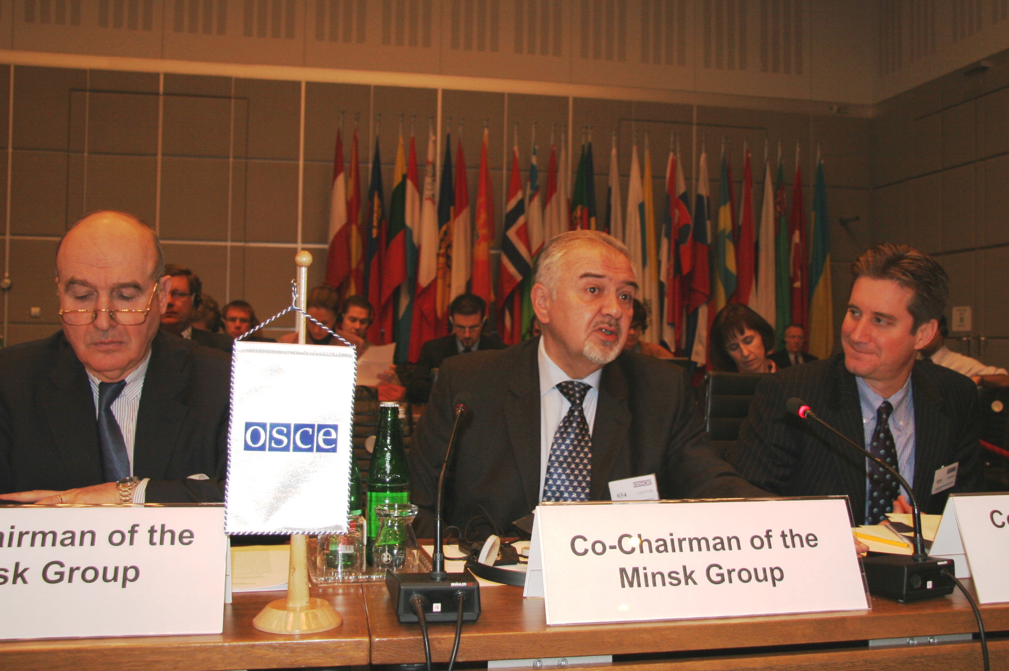 Ambassadors Bernard Fassier of France (l), Yury Merzlyakov of Russia (c), and Matthew Bryza of the United States, the Co-Chairmen of the Minsk Group, present a joint statement on Nagorno-Karabakh to the OSCE Permanent Council, 16 November 2006.