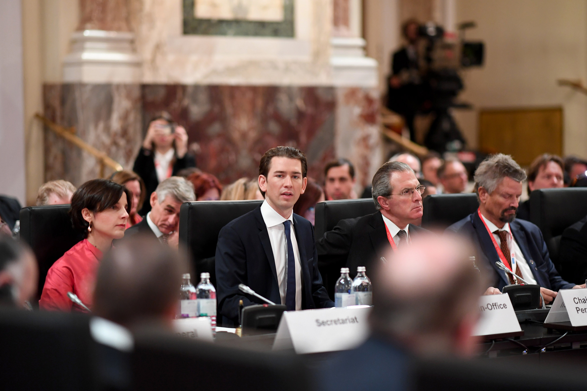 OSCE Chairperson-in-Office Sebastian Kurz delivering the opening speech at the 24th OSCE Ministerial Council, Vienna, 7 December 2017.