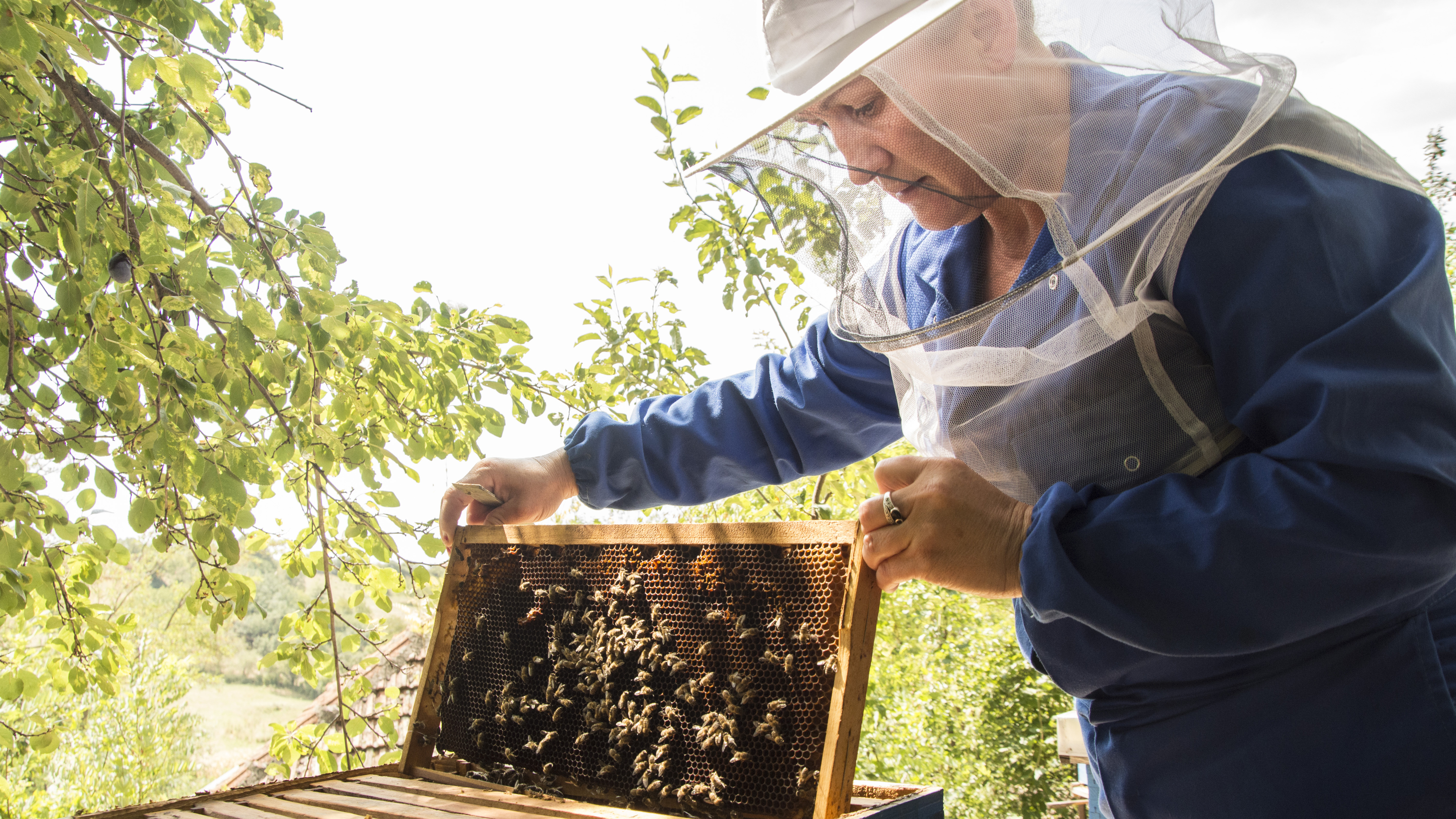 Valbona Salihu, attending to one of her beehives, Syriganë/Suvo Grlo, 18 August 2017.