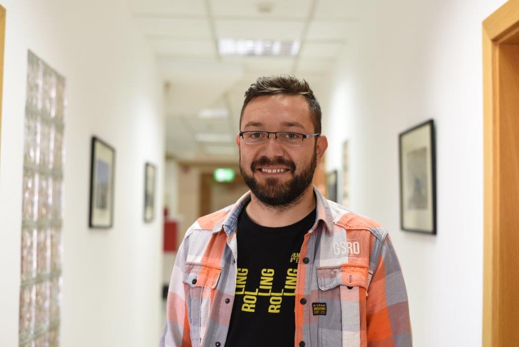 Edis Galushi during one of his visits to OSCE Mission in Kosovo headquarters, Prishtinë/Priština.