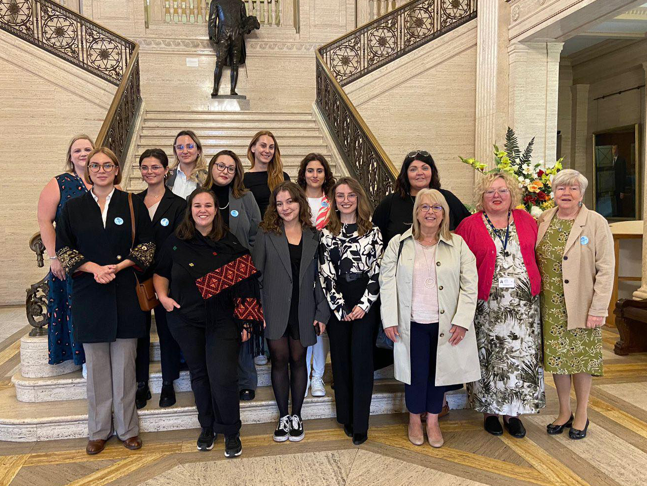 Alumnae of the OSCE-supported Dialogue Academy for young women from Prishtinë/Priština and Belgrade attending meetings at the Stormont Assembly in Northern Ireland. Belfast, 14 September 2023