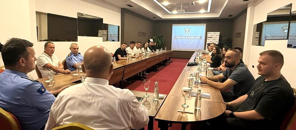 Kosovo Police engage with youth during one of the Mission-supported outreach events, aiming to encourage them to apply and join their ranks. Gjilan/Gnjilane, 1 July 2025.