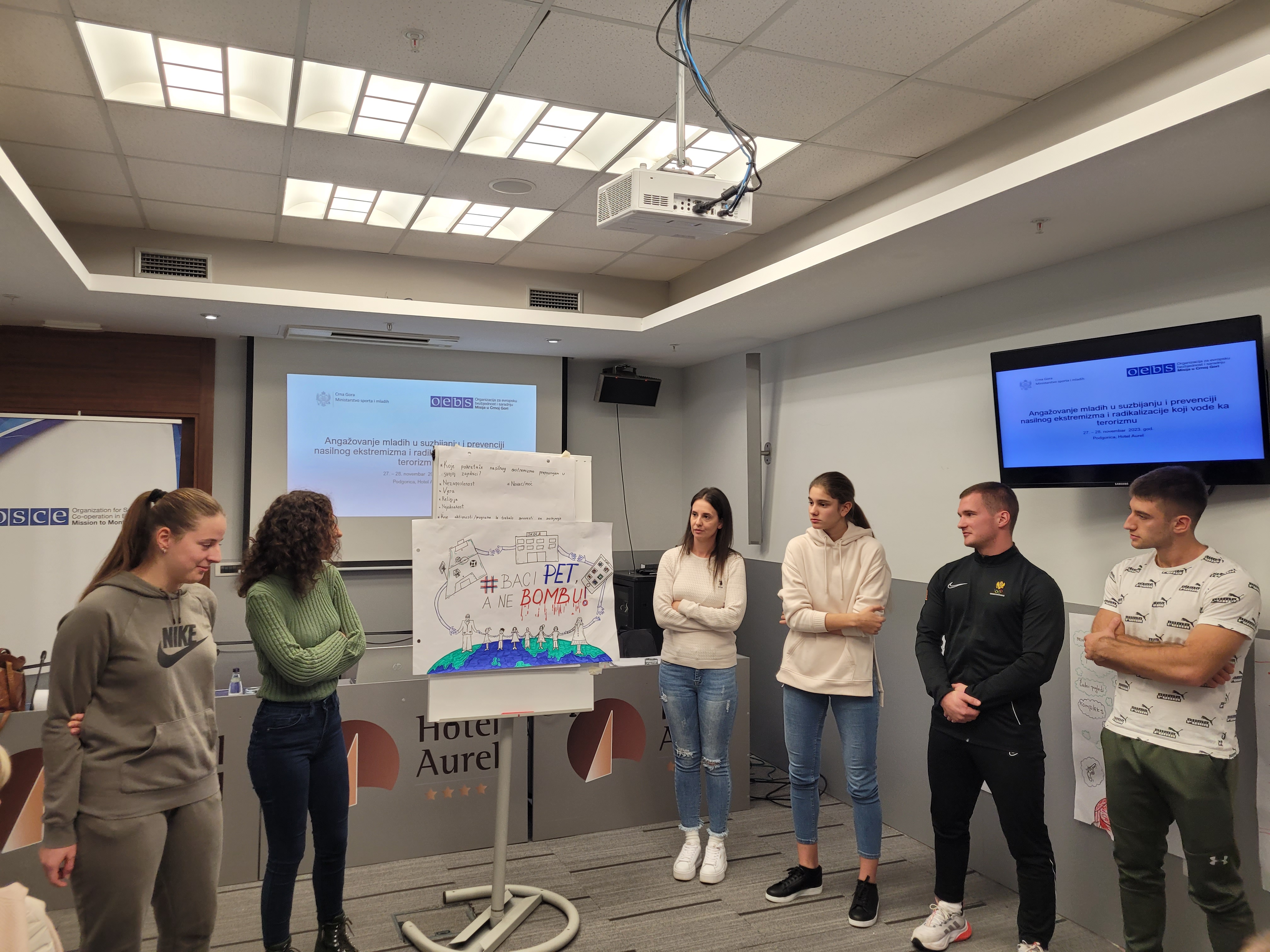 Participants at the workshop "Youth engagement in countering and prevention of violent extremism and radicalization that lead to terrorism", organized by the OSCE Mission to Montenegro and the Ministry of Sports and Youth, 28 November 2023.