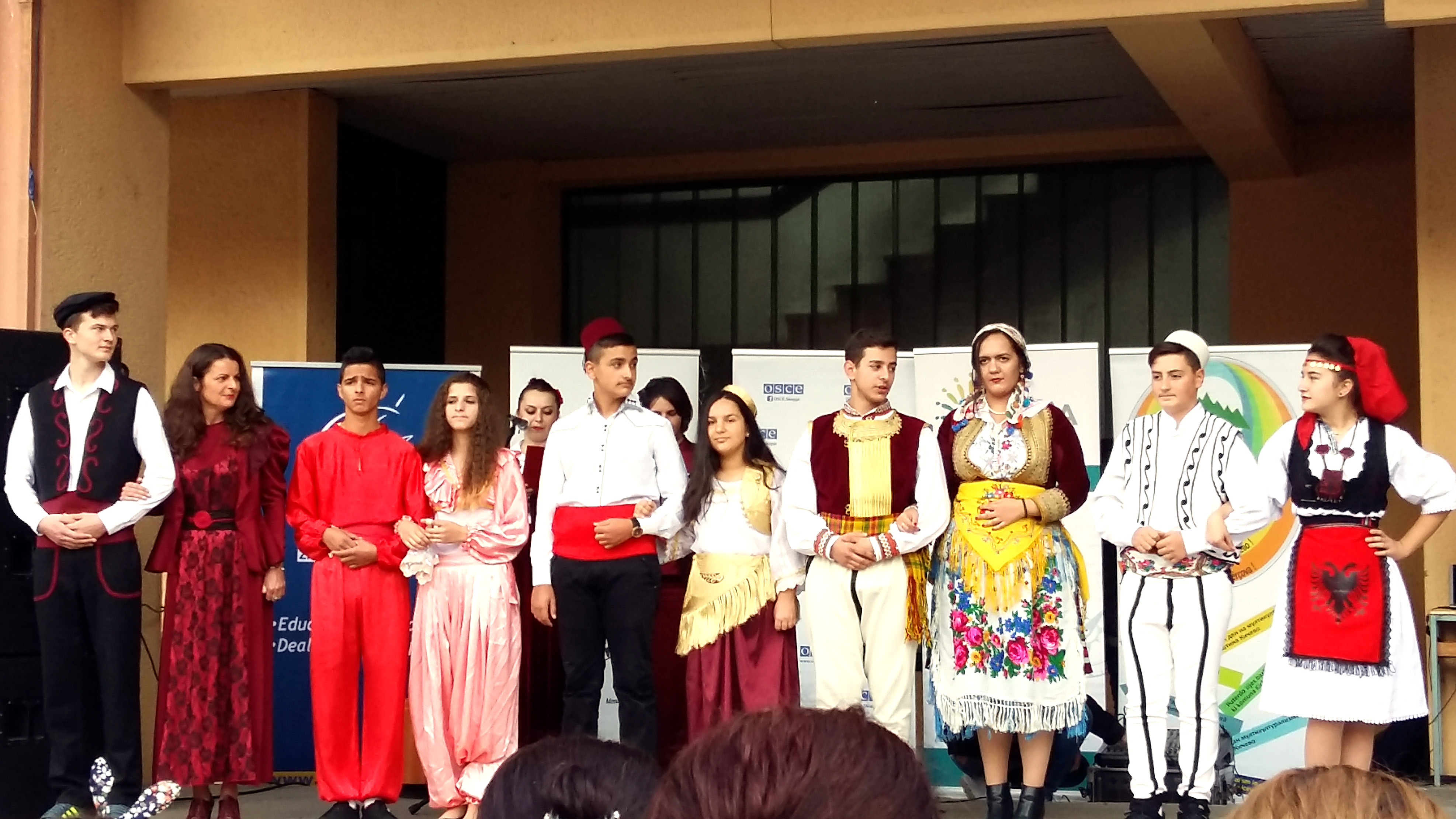 Folklore dresses representing different ethnic communities as part of cultural performance during OSCE-supported Multicultural Day in Kichevo, 17 October 2016.