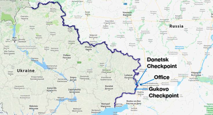 A map marked with the Russian checkpoints Gukovo and Donetsk, where OSCE Observers are stationed.