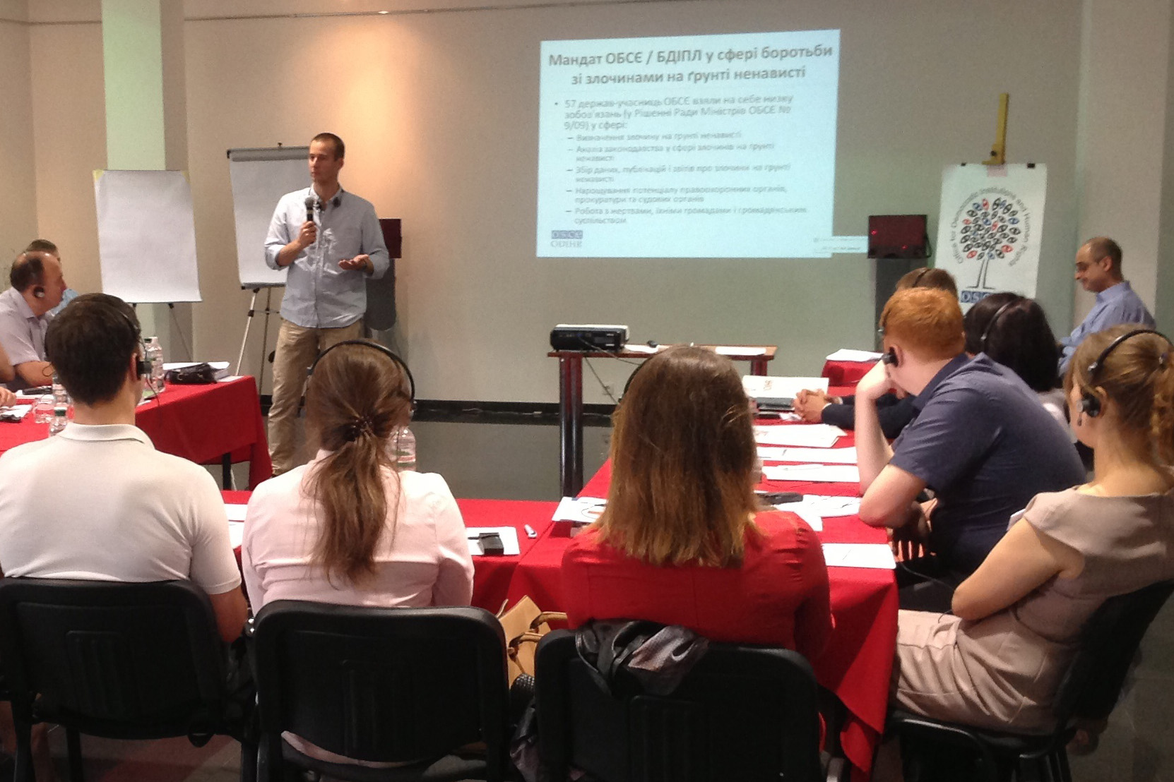 Ales Hanek, ODIHR Hate Crime Officer, discussing international standards on freedom of religion or belief and responses to hate crime with Police and prosecutors from Ukraine during a seminar organized by the OSCE ODIHR in Vinnytsia, Ukraine on 14 July 2015.