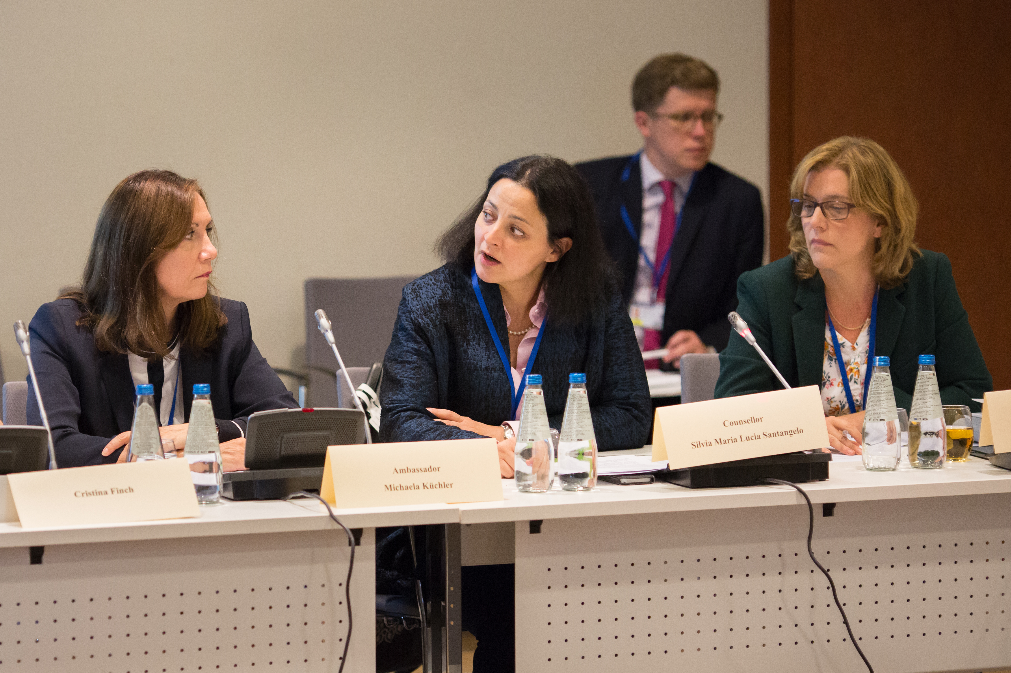 Silvia Santangelo, Deputy Head of Mission for the Human Dimension of the Italian Chairmanship, speaking during an event on addressing anti-Semitism through education held on the margins of the 2018 Human Dimension Implementation Meeting. 14 September 2018, Warsaw