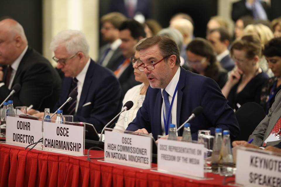 Ambassador Alessandro Azzoni, Permanent Representative of Italy to the OSCE in Vienna, addressing participants in the opening of the 2018 Human Dimension Implementation Meeting on behalf of the Italian OSCE Chairmanship, 10 September 2018, Warsaw.