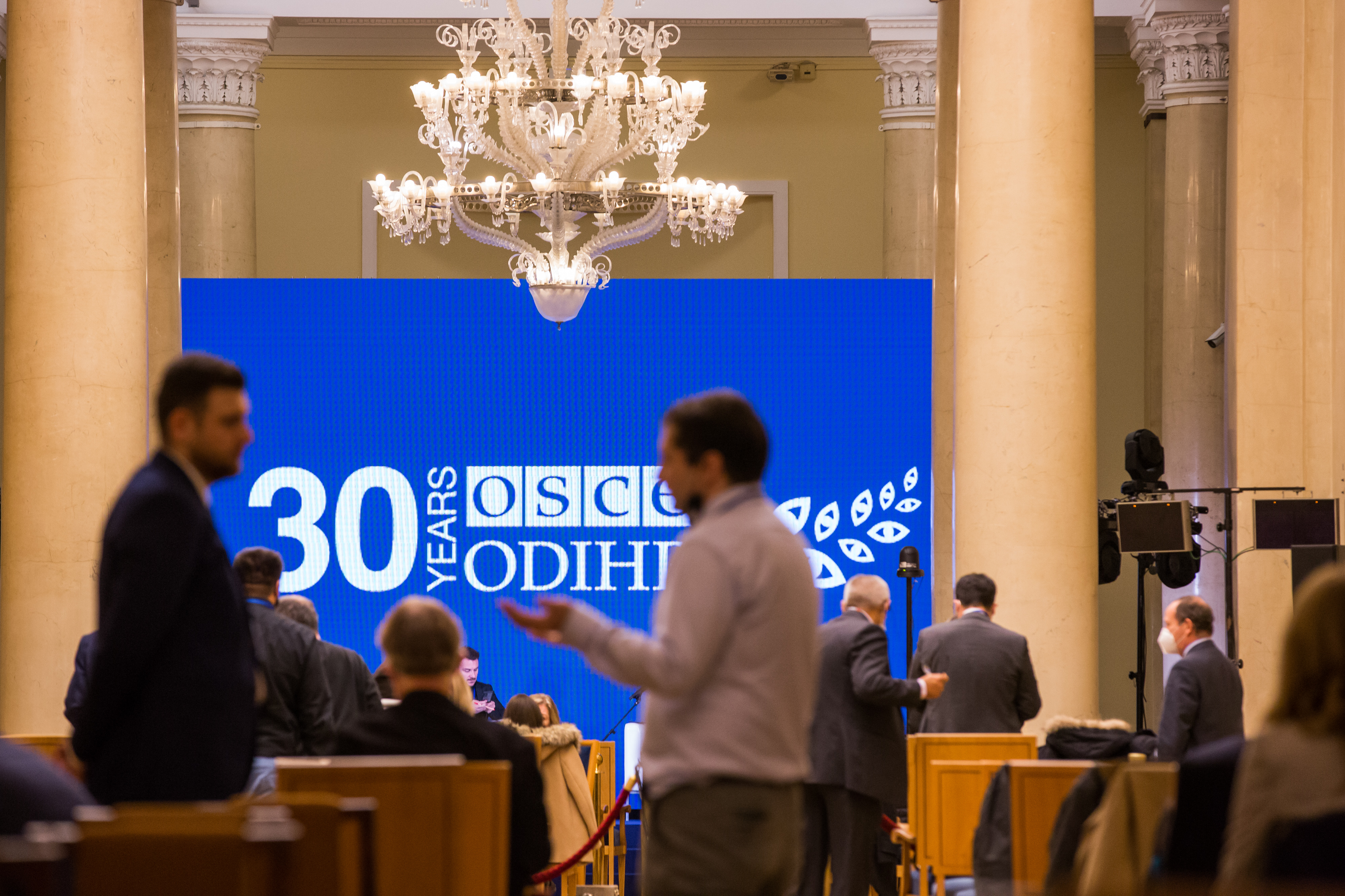 Participants gather for ODIHR's 30th anniversary conference at Warsaw's Palace of Culture and Science. 14 October 2021.
