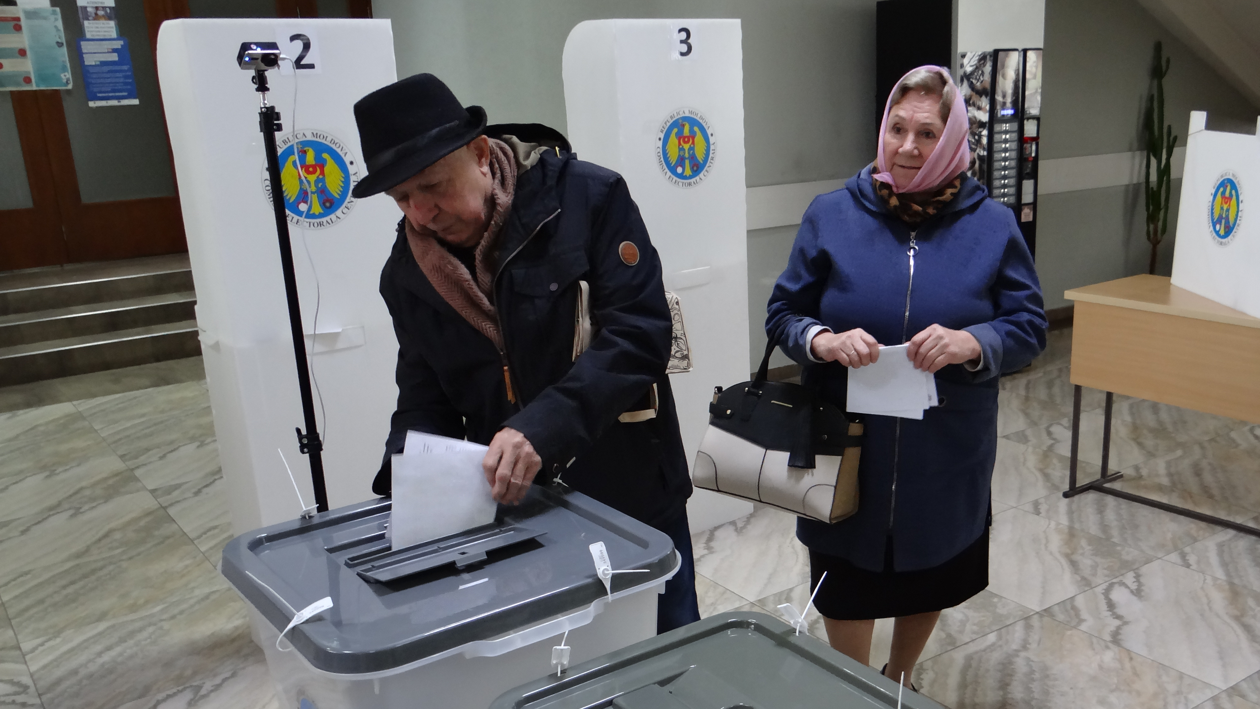 Voters cast their votes during the presidential election and constitutional referendum in Moldova, Chișinău, 20 October 2024.