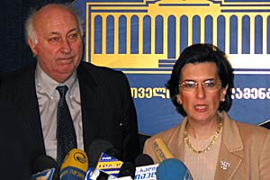 OSCE Parliamentary Assembly President Bruce George and then acting Georgian President Nino Burjanadze talking to press in Tbilisi, 24 November 2003.