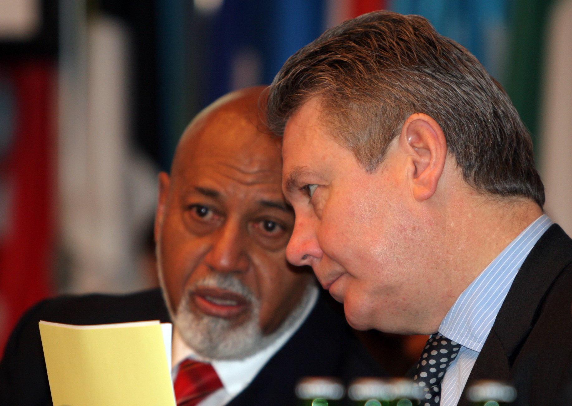 OSCE Chairman-in-Office Karel De Gucht (right) listens to Alcee Hastings, President of the OSCE Parliamentary Assembly, in Vienna 23 February 2006.
