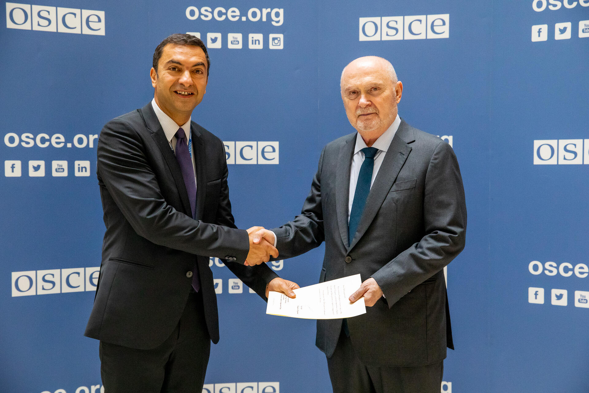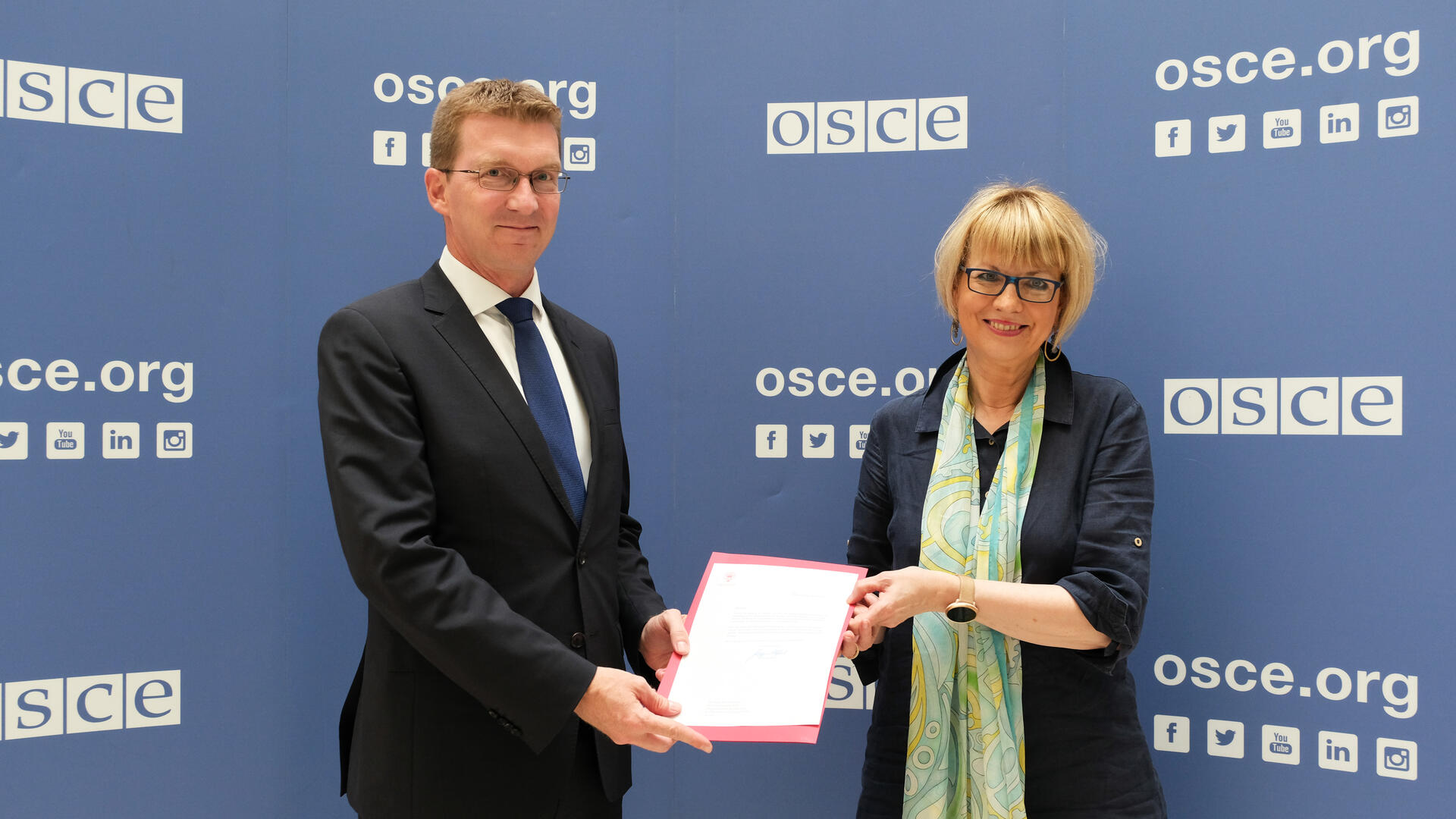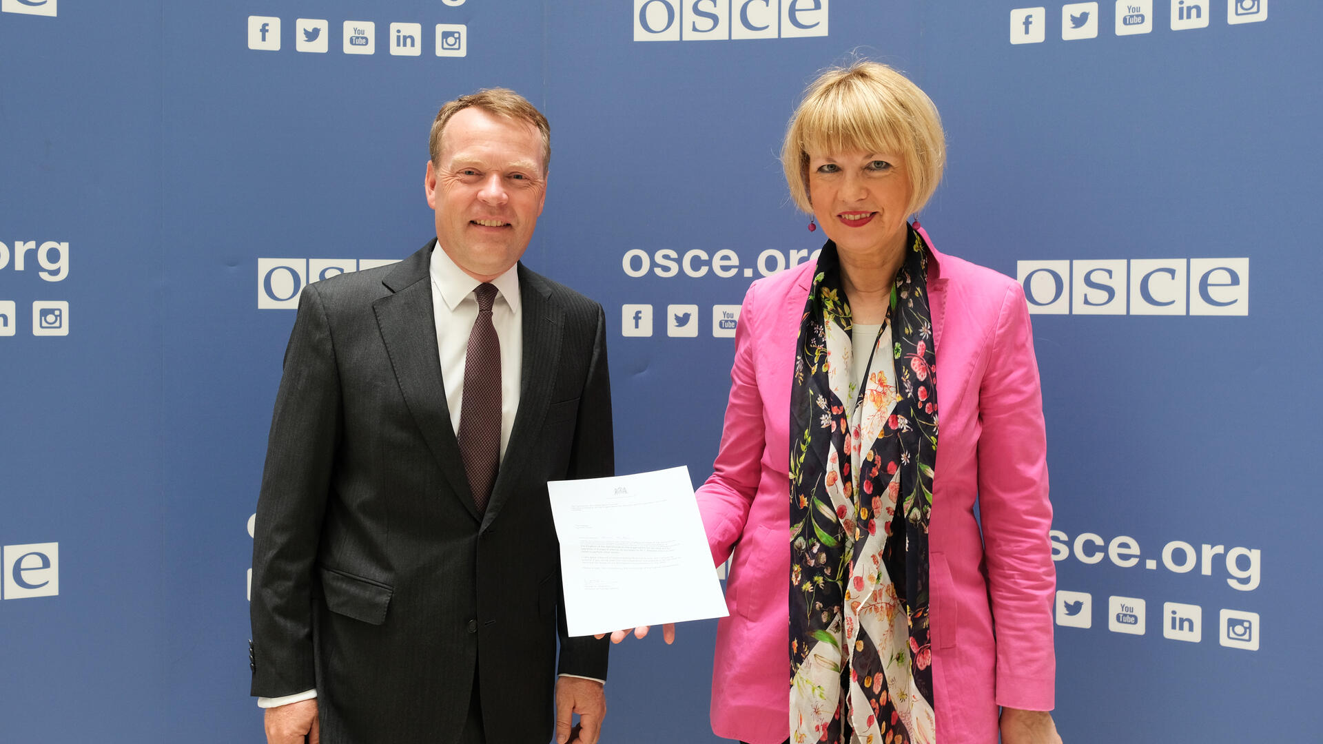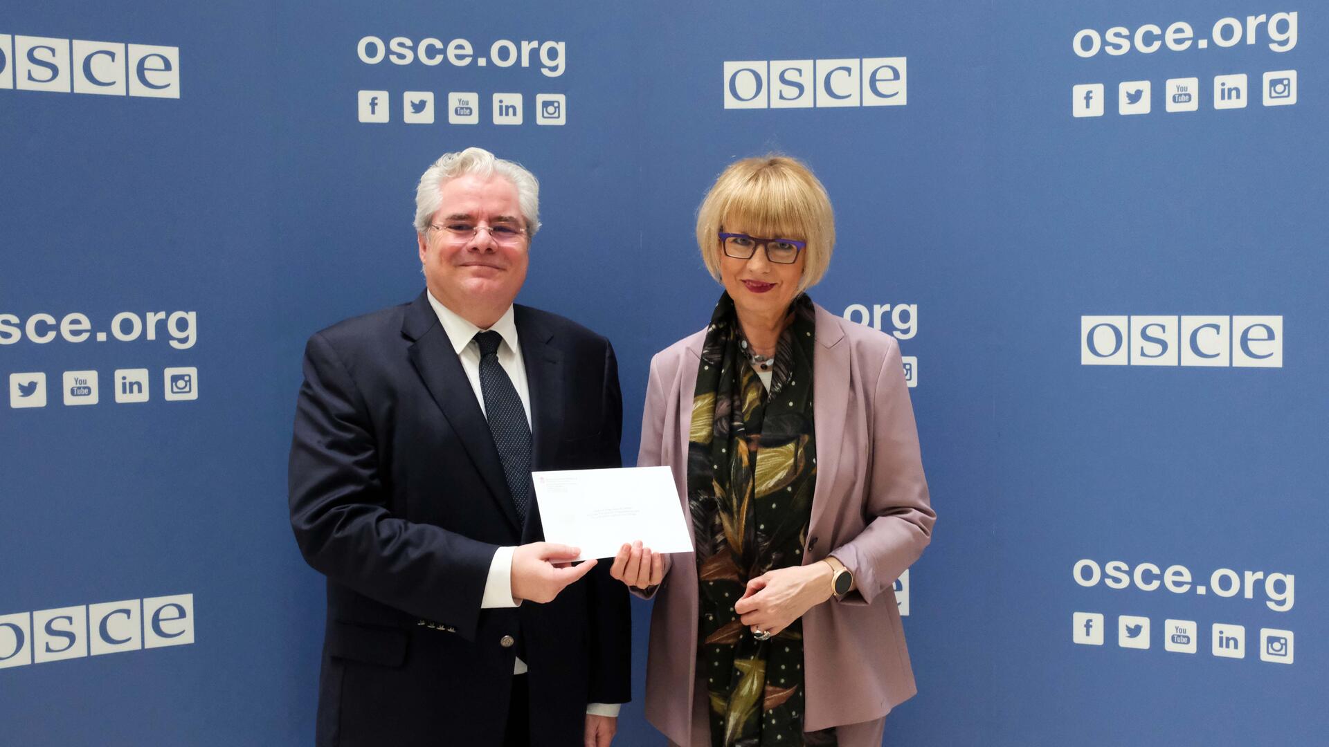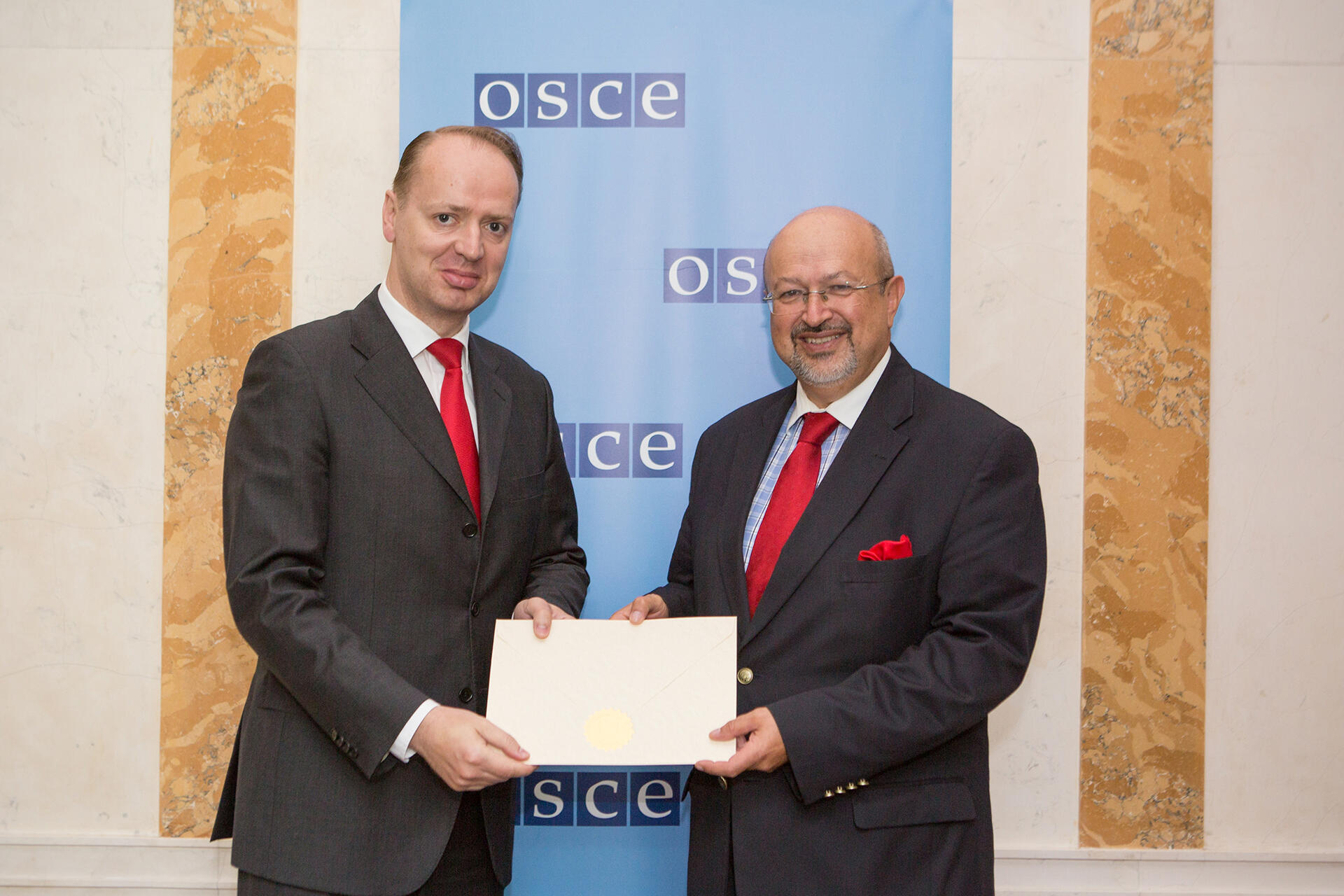 A selection of photos of Heads of Delegations of OSCE participating States presenting credentials to the OSCE. Photos in this gallery are posted with the consent of the Heads of Delegations, and might not include all Delegations.