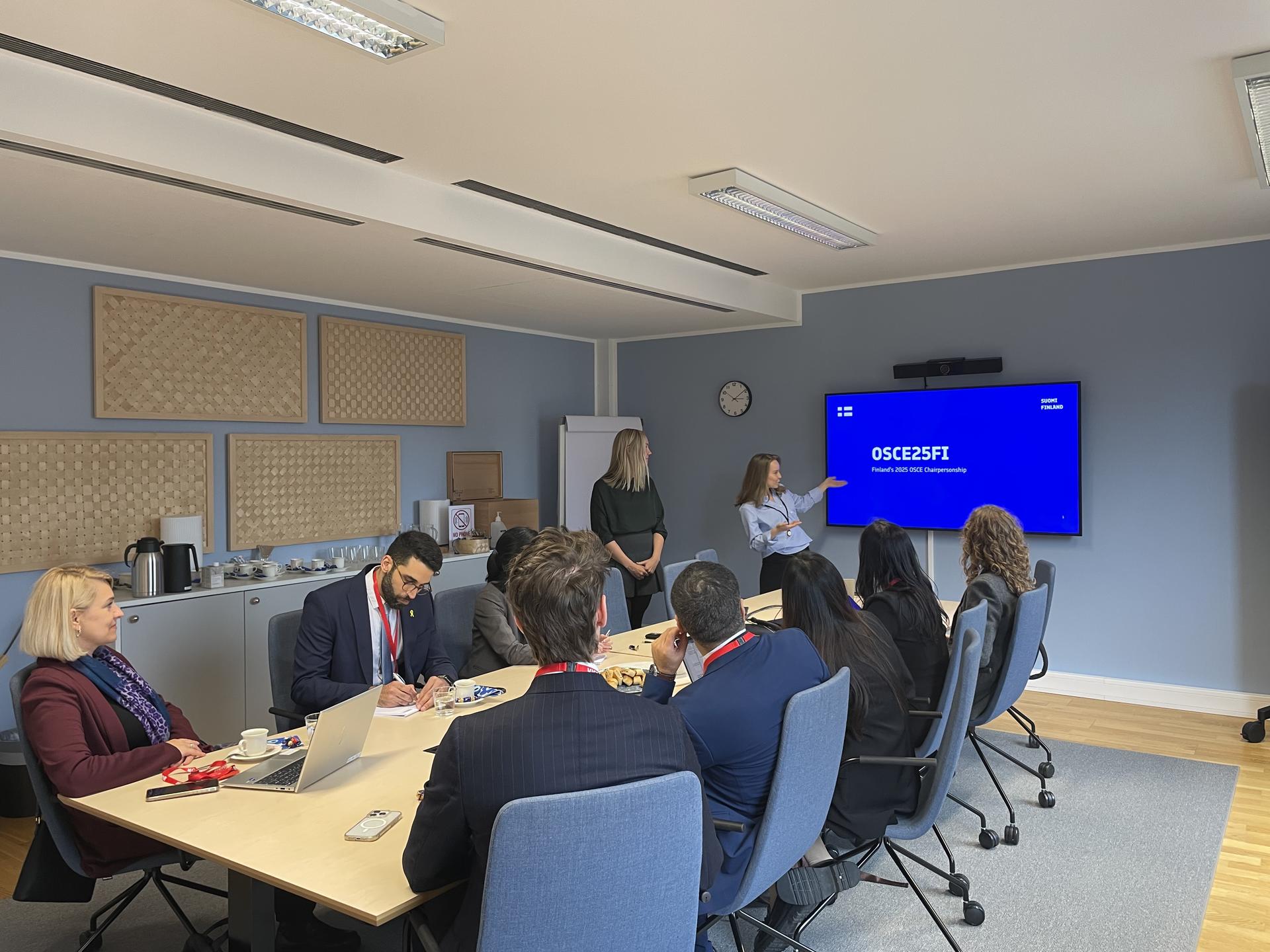 During their visit, the participants also met with representatives of several OSCE Institutions including the OSCE Office for Democratic Institutions and Human Rights, the OSCE Parliamentary Assembly (Vienna office), the Office of the OSCE Representative on Freedom of the Media (RFoM) as well as with representatives from OSCE participating States, including an exchange with the Finnish Chairpersonship.