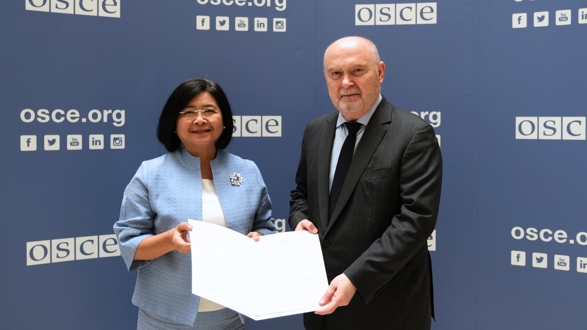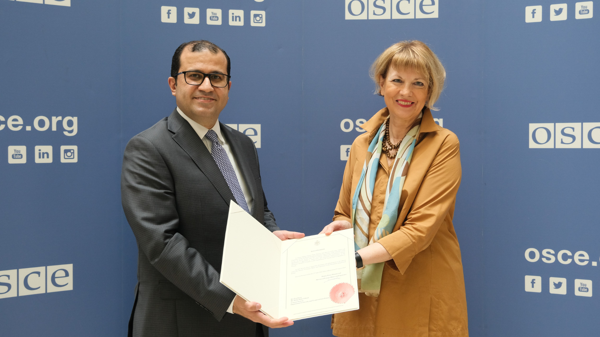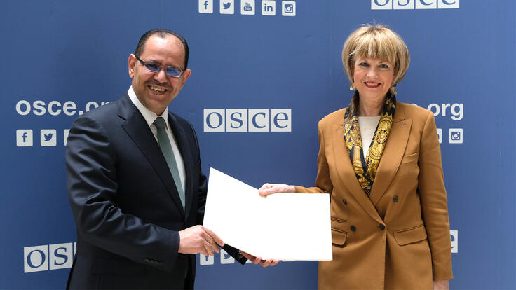 A selection of photos of Heads of Delegations of the OSCE Partners for Co-operation presenting credentials to the OSCE. Photos in this gallery are posted with the consent of the Heads of Delegations, and might not include all Partners for Co-operation.