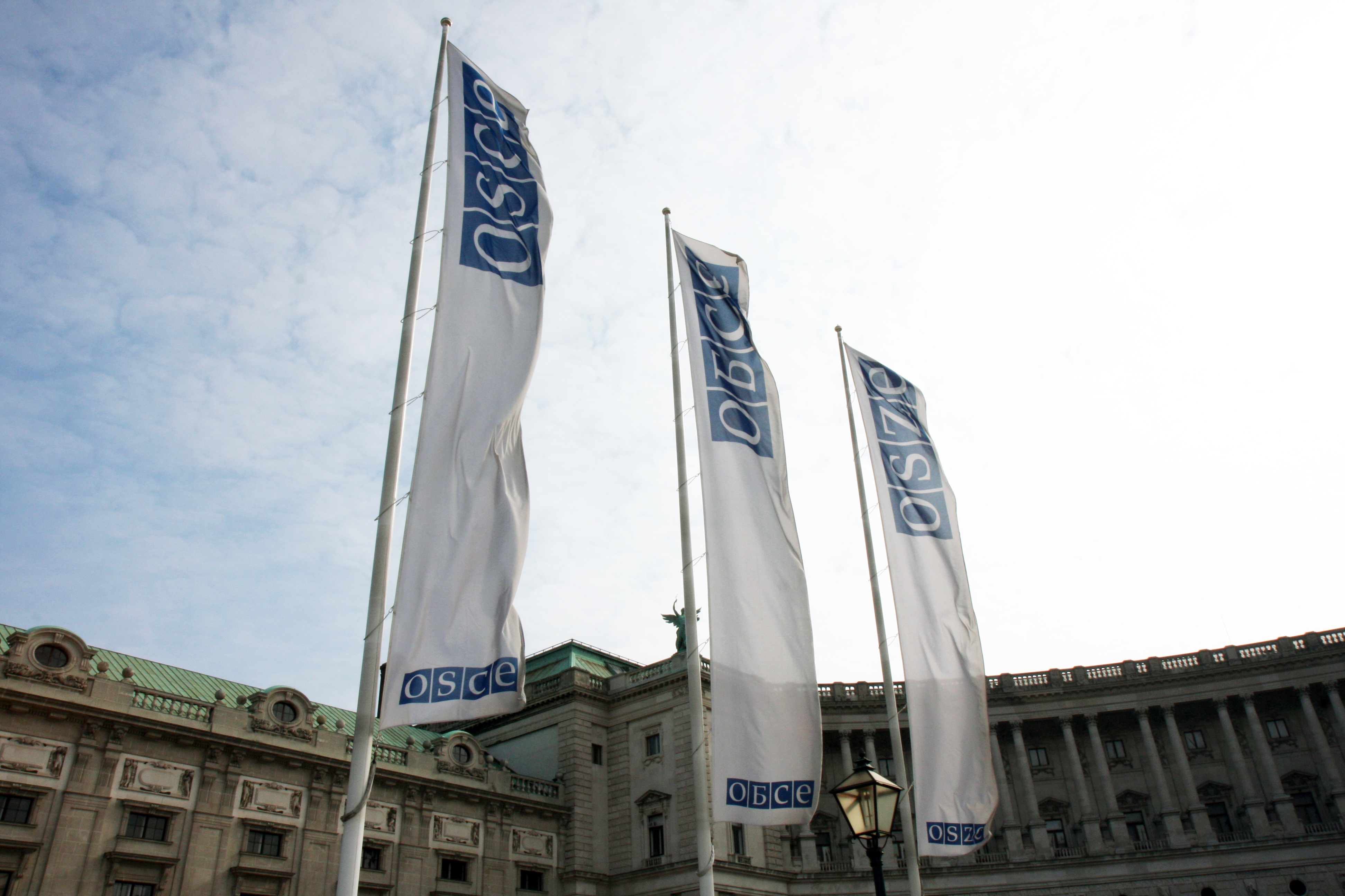 The flags of the OSCE in front of the Hofburg in Vienna, 9 March 2010.