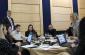 Head of SPAK Altin Dumani (left), Ambassador Tarran (across) and their staff meet on the occasion of a donation by the OSCE Presence to enhance SPAK’s newly-established Task Force’s capacities in preventing and investigating electoral crimes, Tirana, 9 April 2025. (OSCE/Joana Karapataqi)