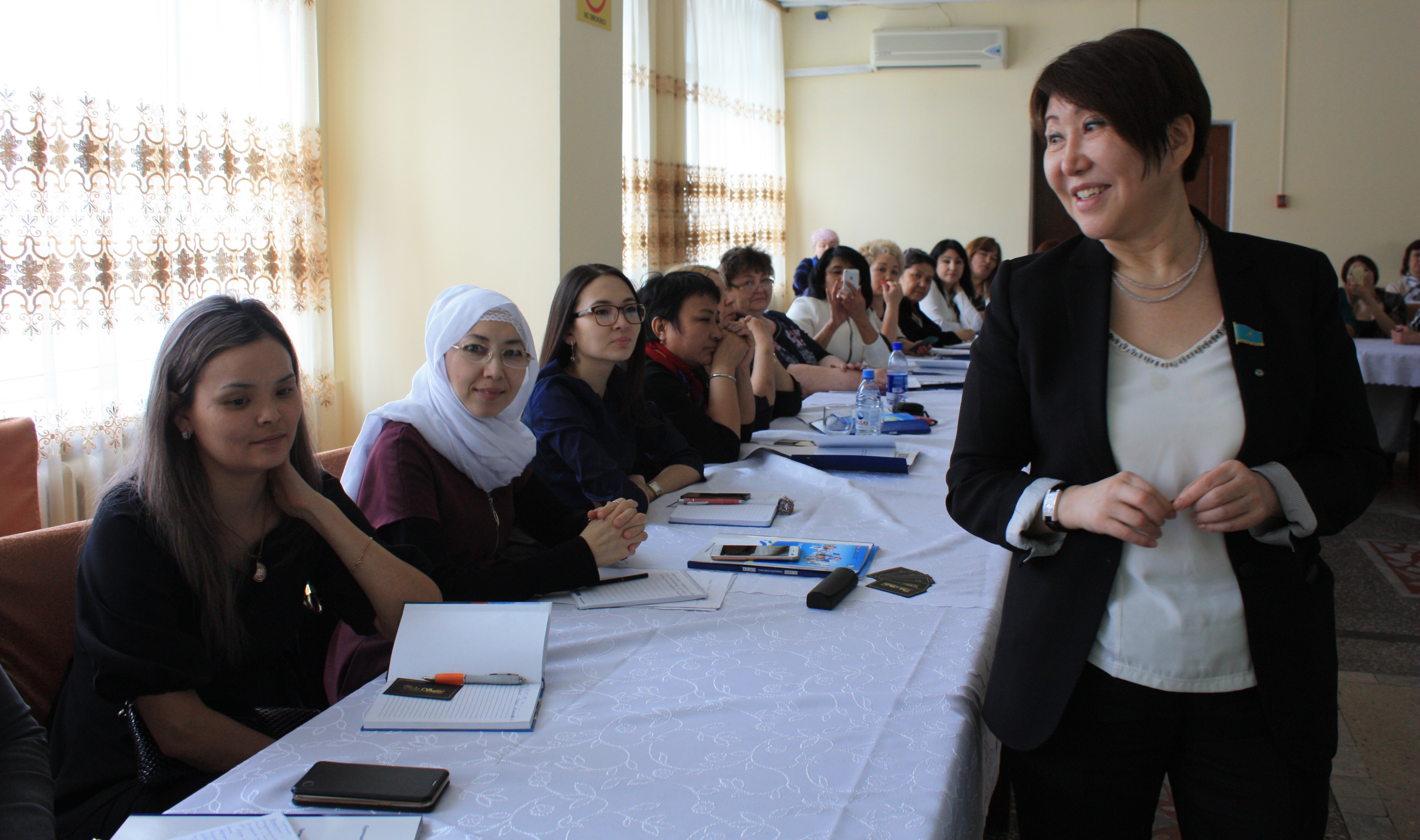 Meruert Kazbekova, Parliament Member and Women Entrepreneurs’ Union Chair, meeting women from rural areas of Akmola region and discussing challenges of entrepreneurship in the villages, Shortandy, 30 March 2017.