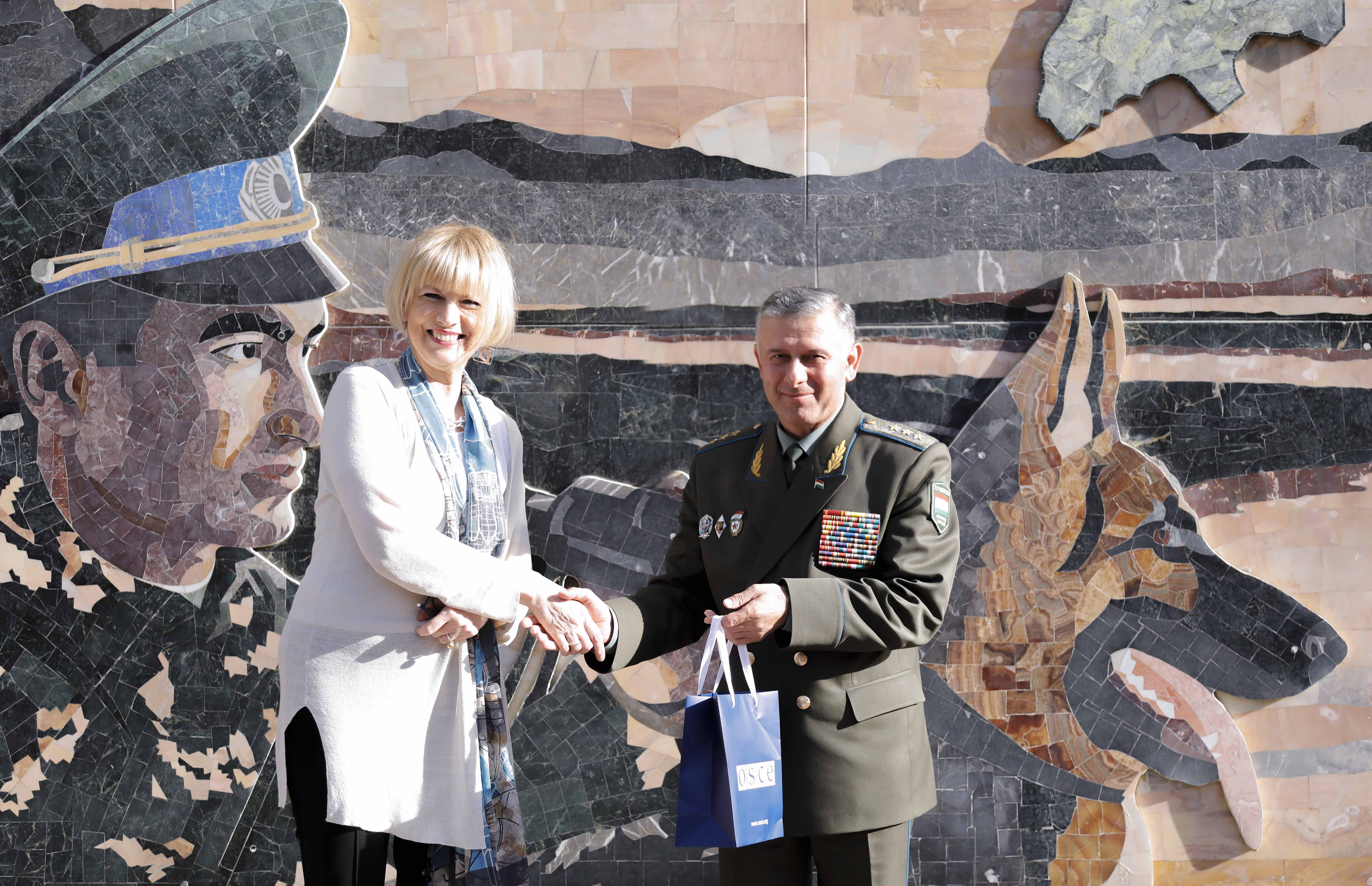 Helga Maria Schmid, OSCE Secretary General and Colonel-General Rajabali Rahmonali, Commander of the Border Troops of Tajikistan at the handover ceremony of protective, technical and transport equipment for use along the border with Afghanistan, Dushanbe, 6 June 2022.