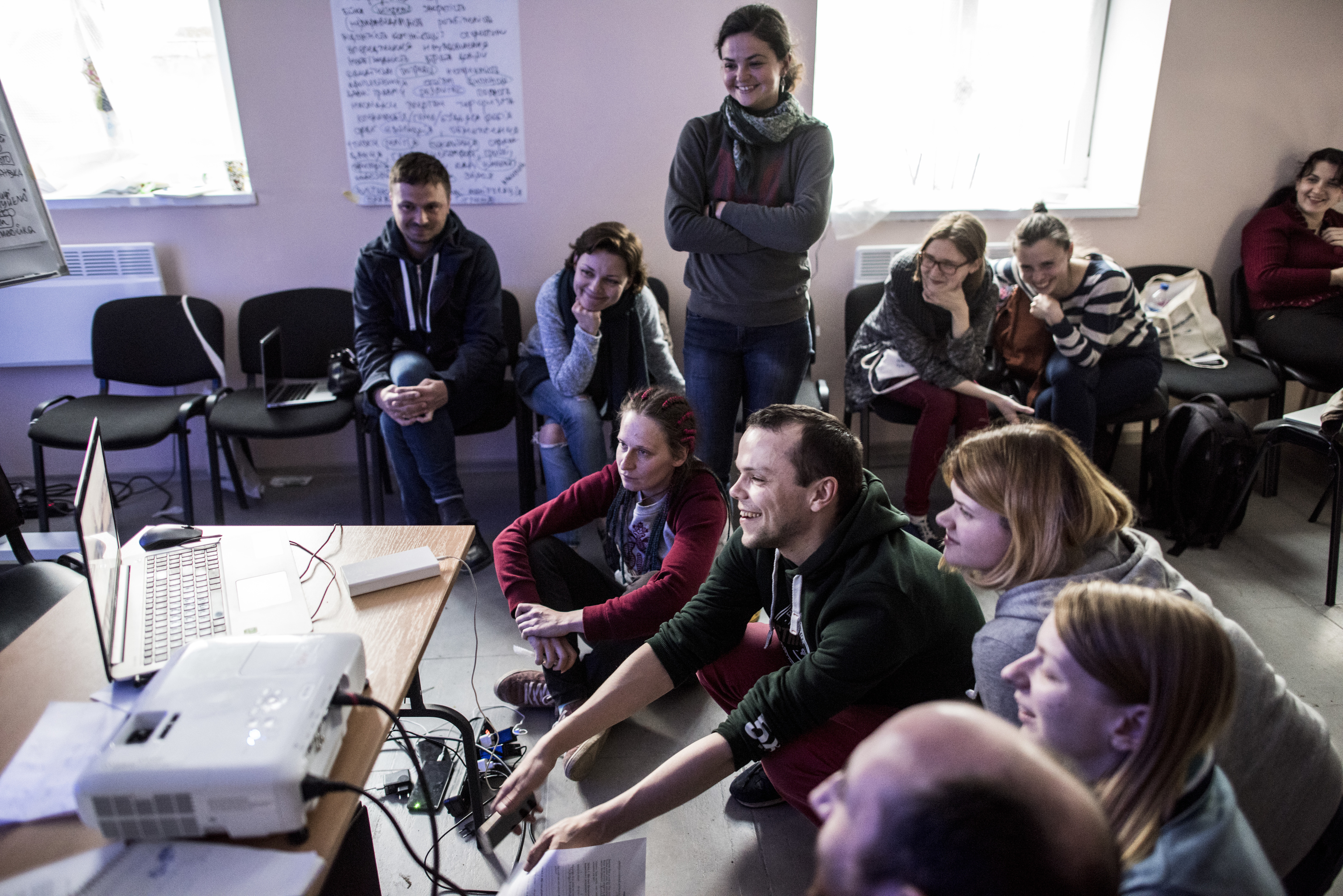 The journalists benefit from joint discussions and work on the collected information, receiving support of mentors and trainers during group work.
