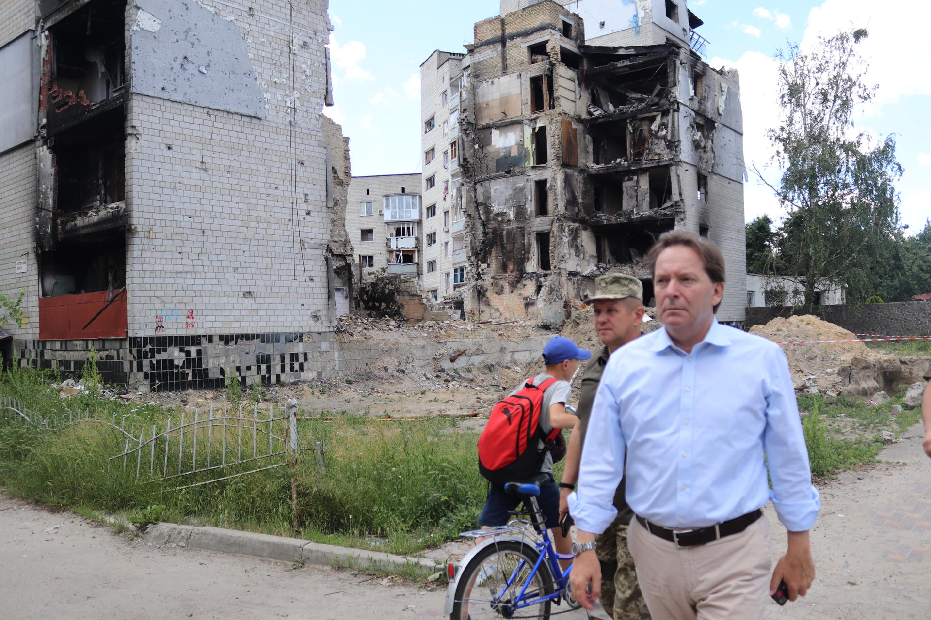 On Wednesday, 15 June 2022, Ambassador Henrik Villadsen, the OSCE Project Co-ordinator, visited towns and villages that were the epicenter of heavy fighting in February-April in the attempted attack of Russian troops on Kyiv.
