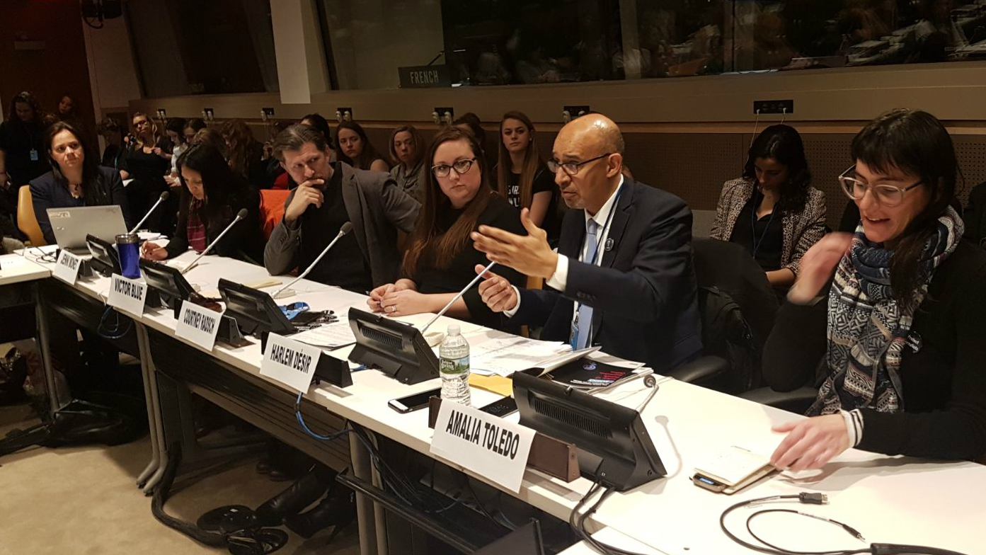 OSCE Representative on Freedom of the Media Harlem Désir speaking at a panel on safety of female journalists at the United Nations Headquarters, 14 March 2018, New York.