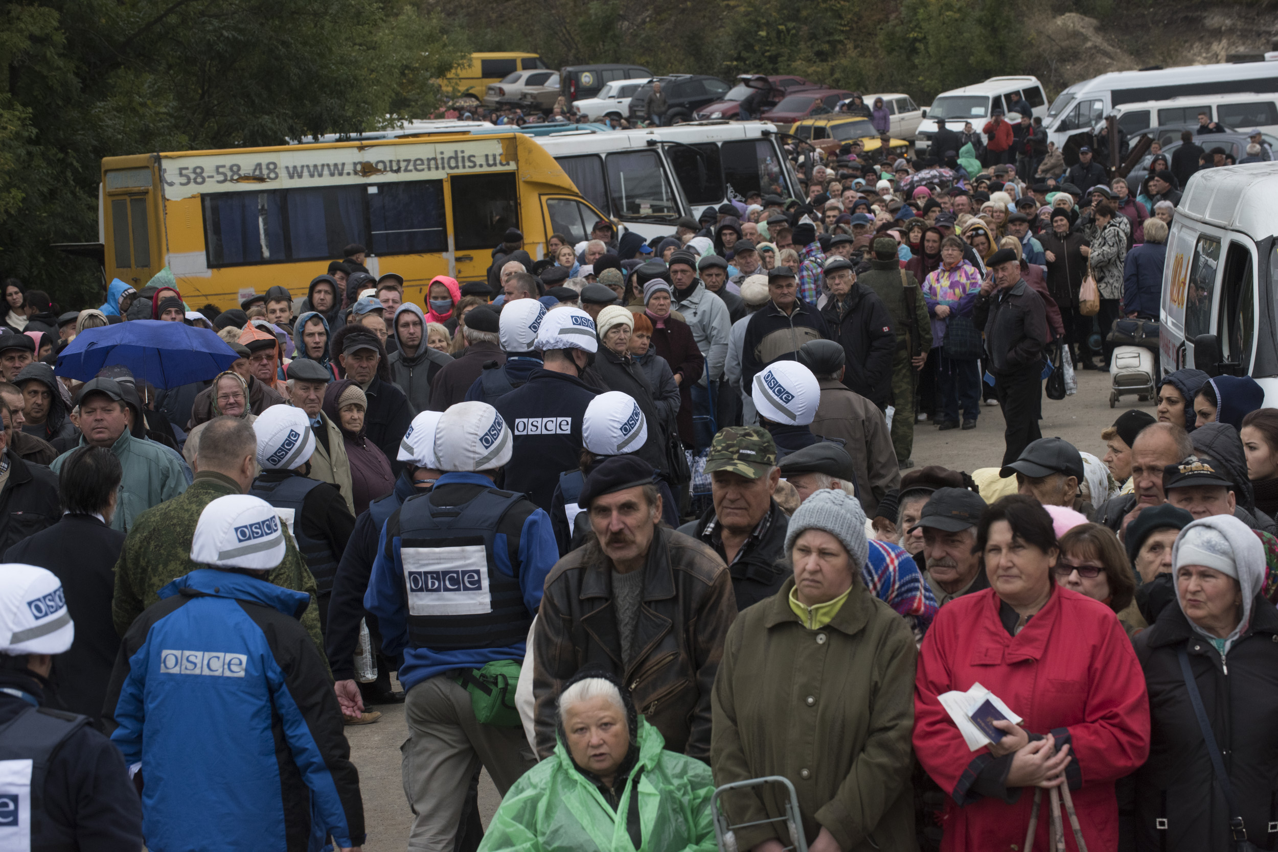 Мирные жители в очереди на контрольном пункте въезда-выезда в Станице Луганской, сентябрь 2016 года. Разведение сил, отвод вооружений, а также обозначение, ограждение и извлечение мин, неразорвавшихся боеприпасов, а также взрывоопасных пережитков войны поможет облегчить жизнь гражданского населения, на плечи которого ложится весь груз последствий нарушений режима прекращения огня.